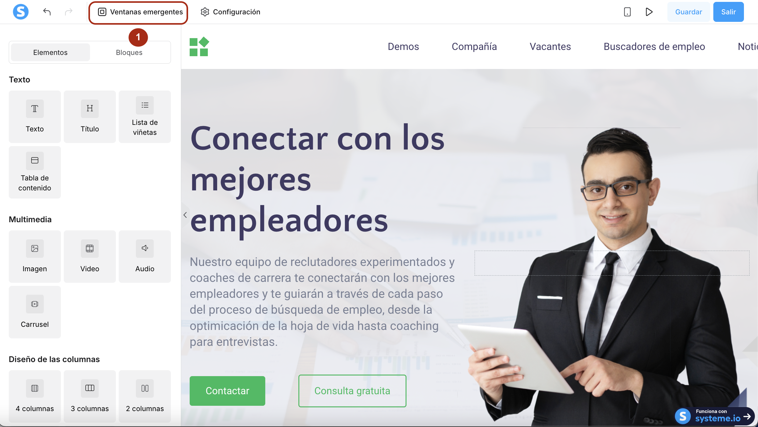 - Una página creada con systeme.io