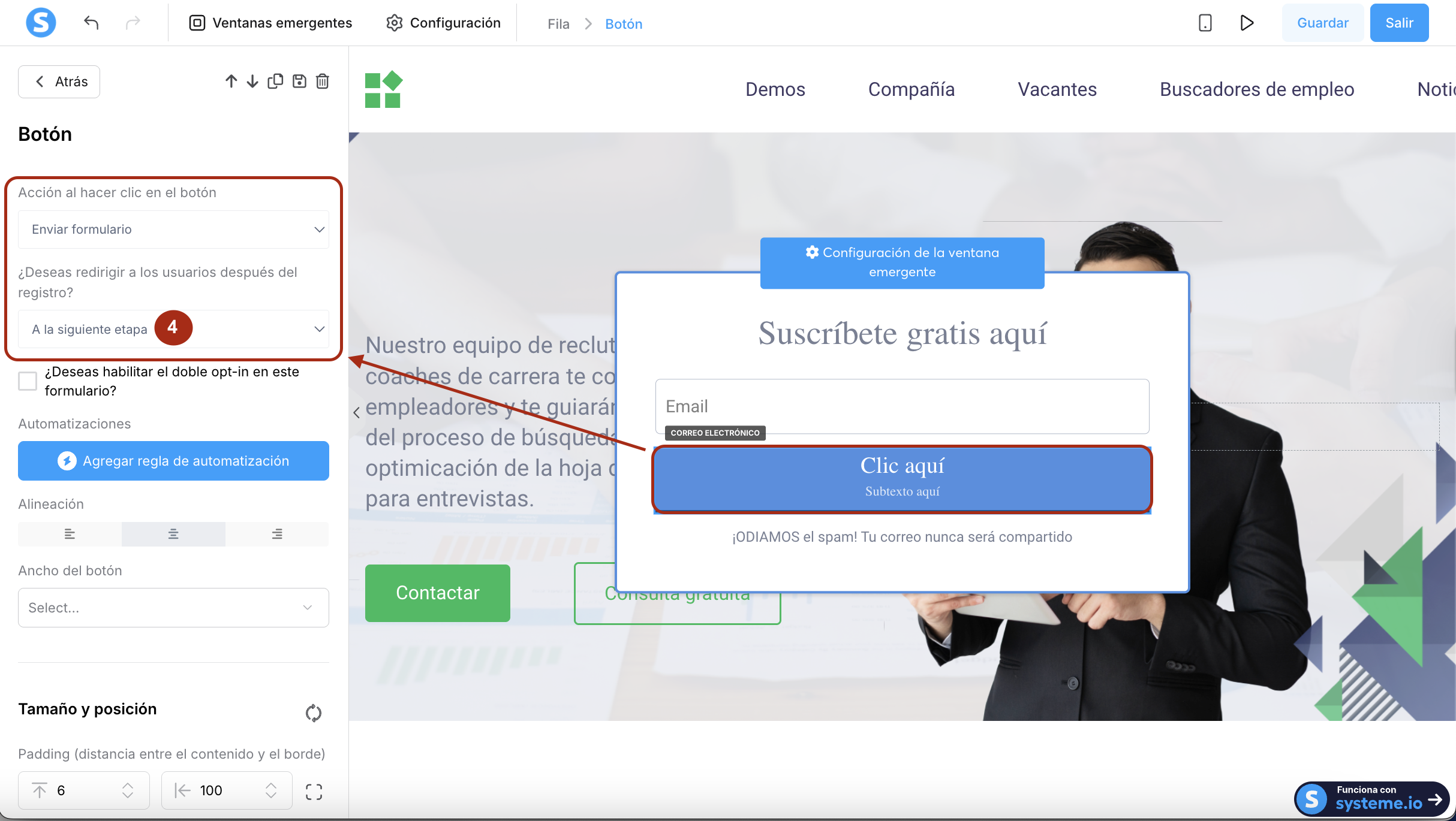 - Especifica a dónde redirigir a tu visitante después del envío (4)