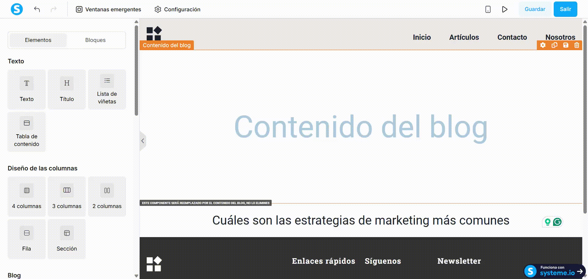 Nota: Los elementos agregados al diseño de blog aparecerán en todas las páginas y publicaciones del blog; sin embargo, solo pueden editarse dentro del editor del Diseño de blog.