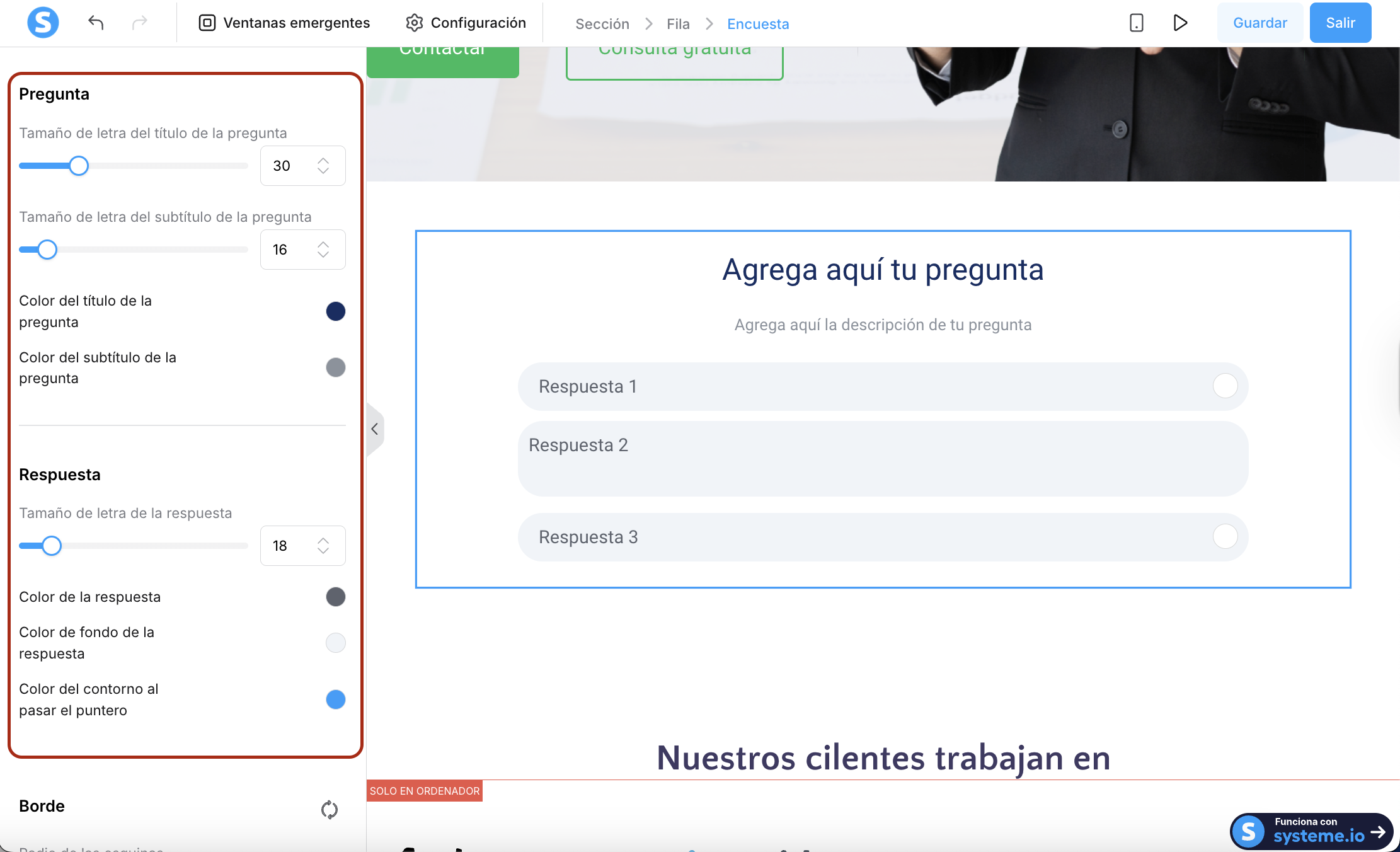 Puedes personalizar la apariencia de tu encuesta usando la siguiente configuración: