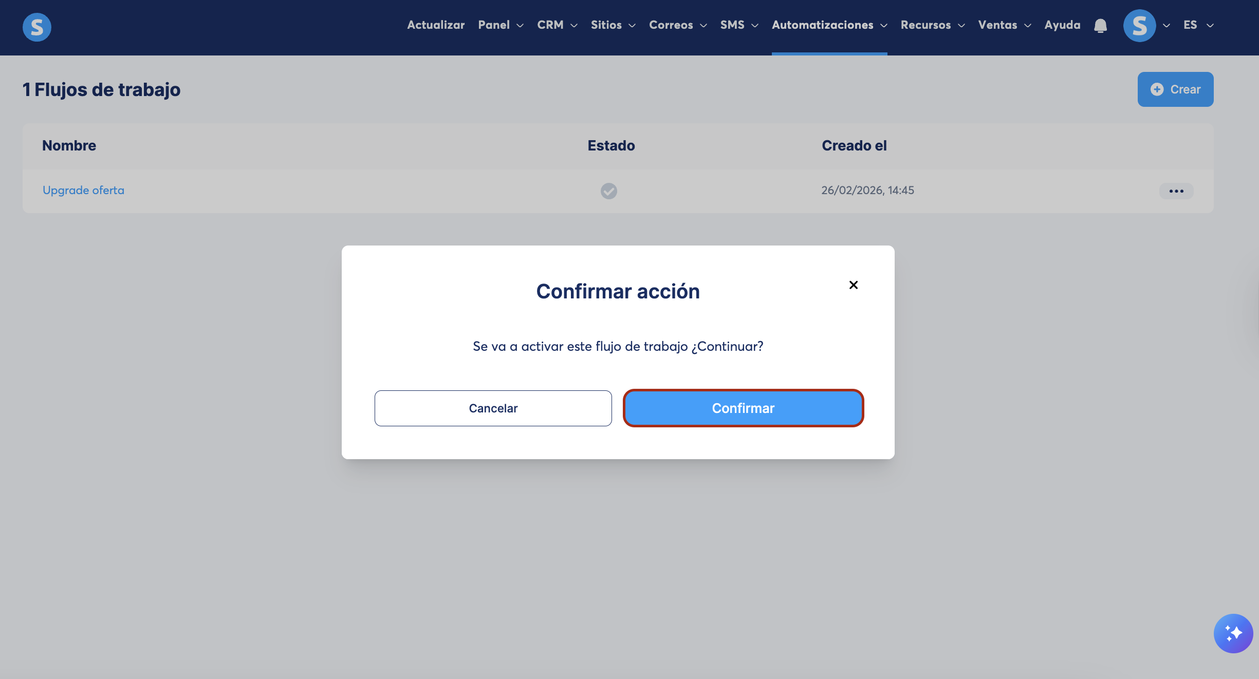 Una vez el flujo de trabajo esté configurado, debes activarlo.