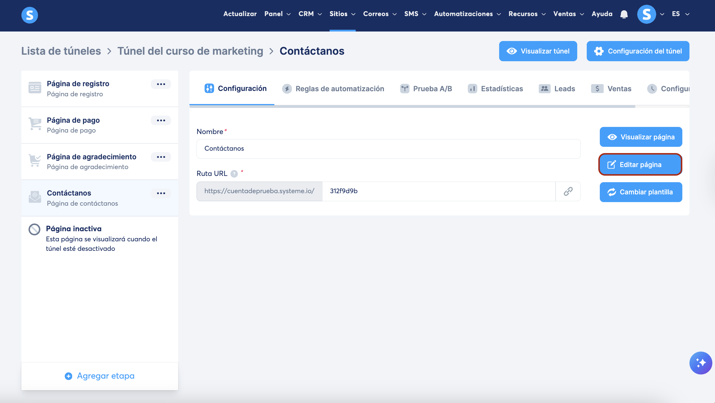 - Para personalizar tu página, haz clic en Editar página para acceder al editor.