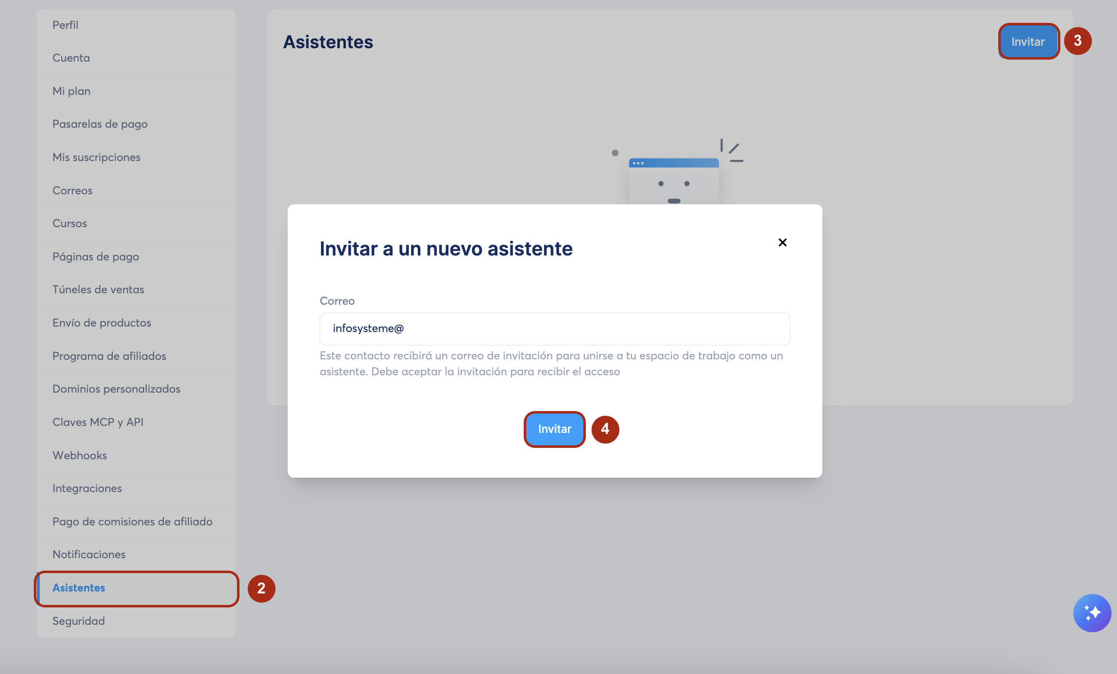 Cómo invitar a un asistente a tu cuenta de systeme.io