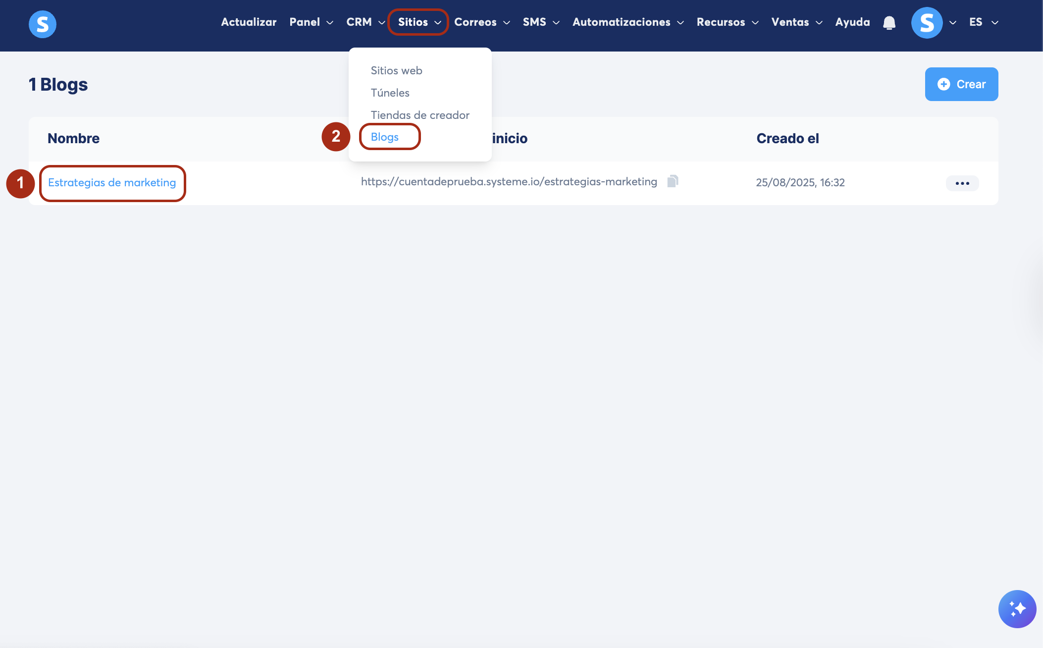 - un blog creado usando systeme.io (Cómo crear un blog en systeme.io)