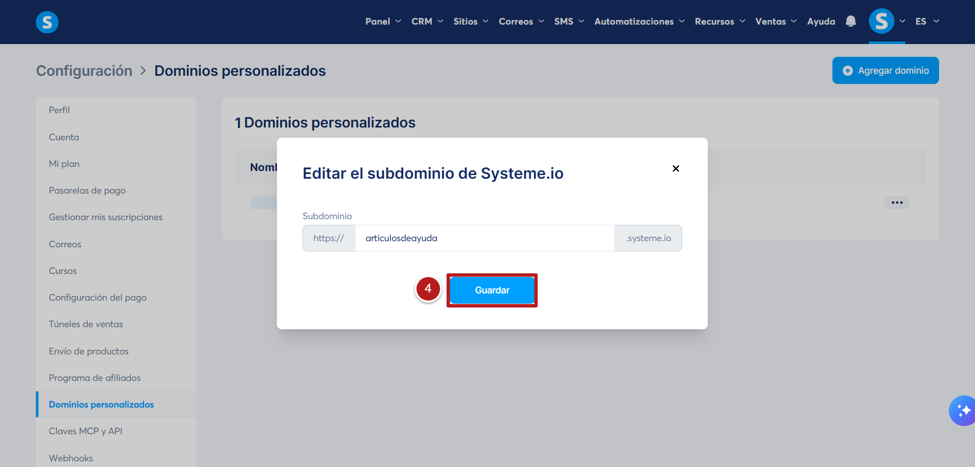 Cómo modificar el subdominio de systeme.io