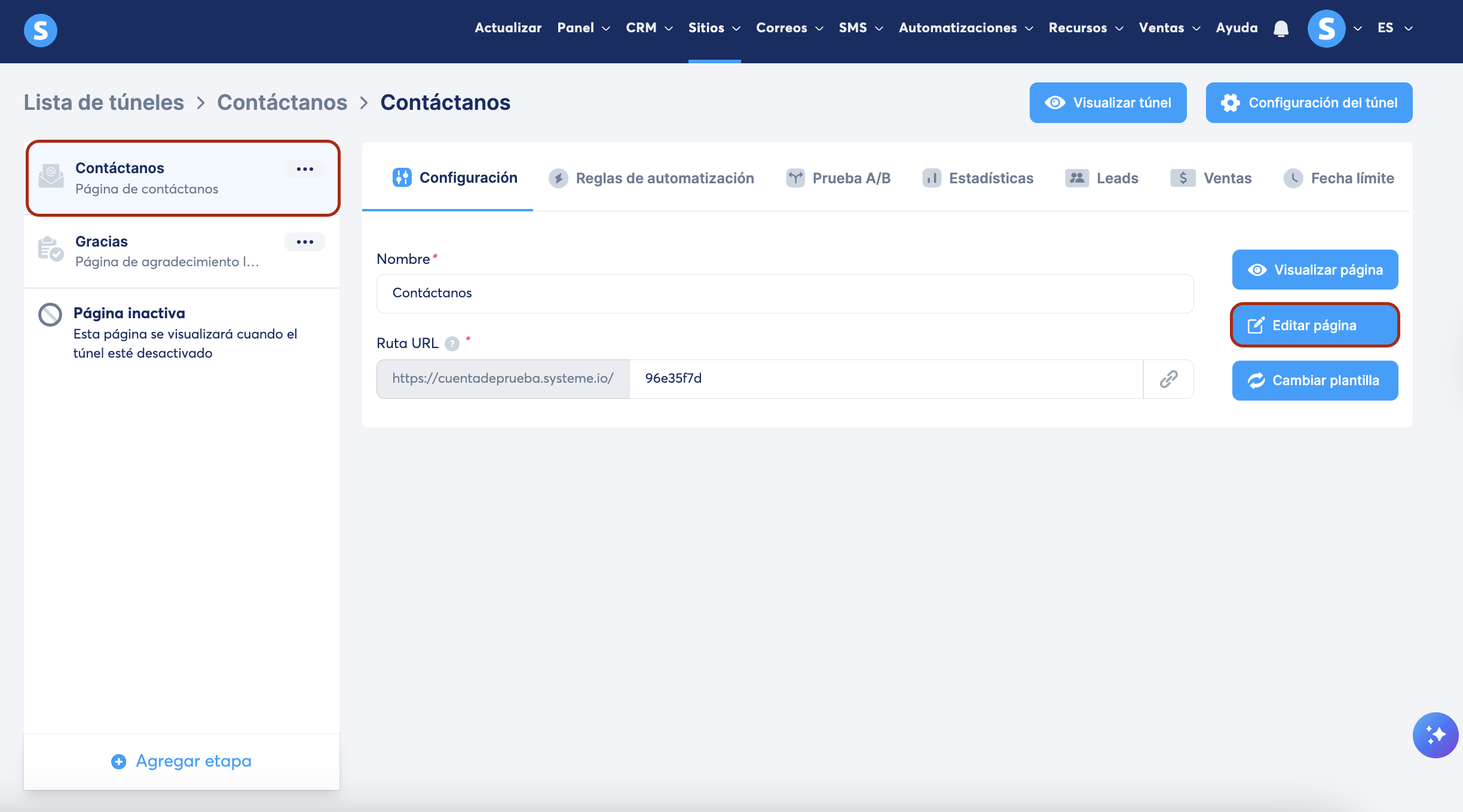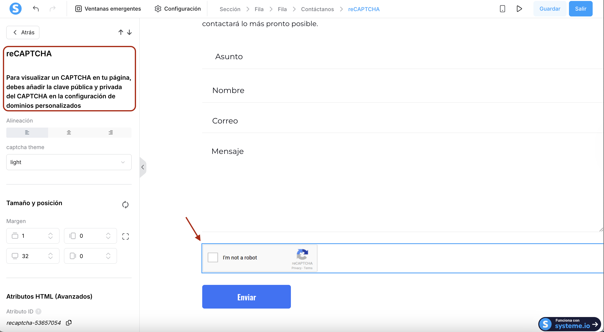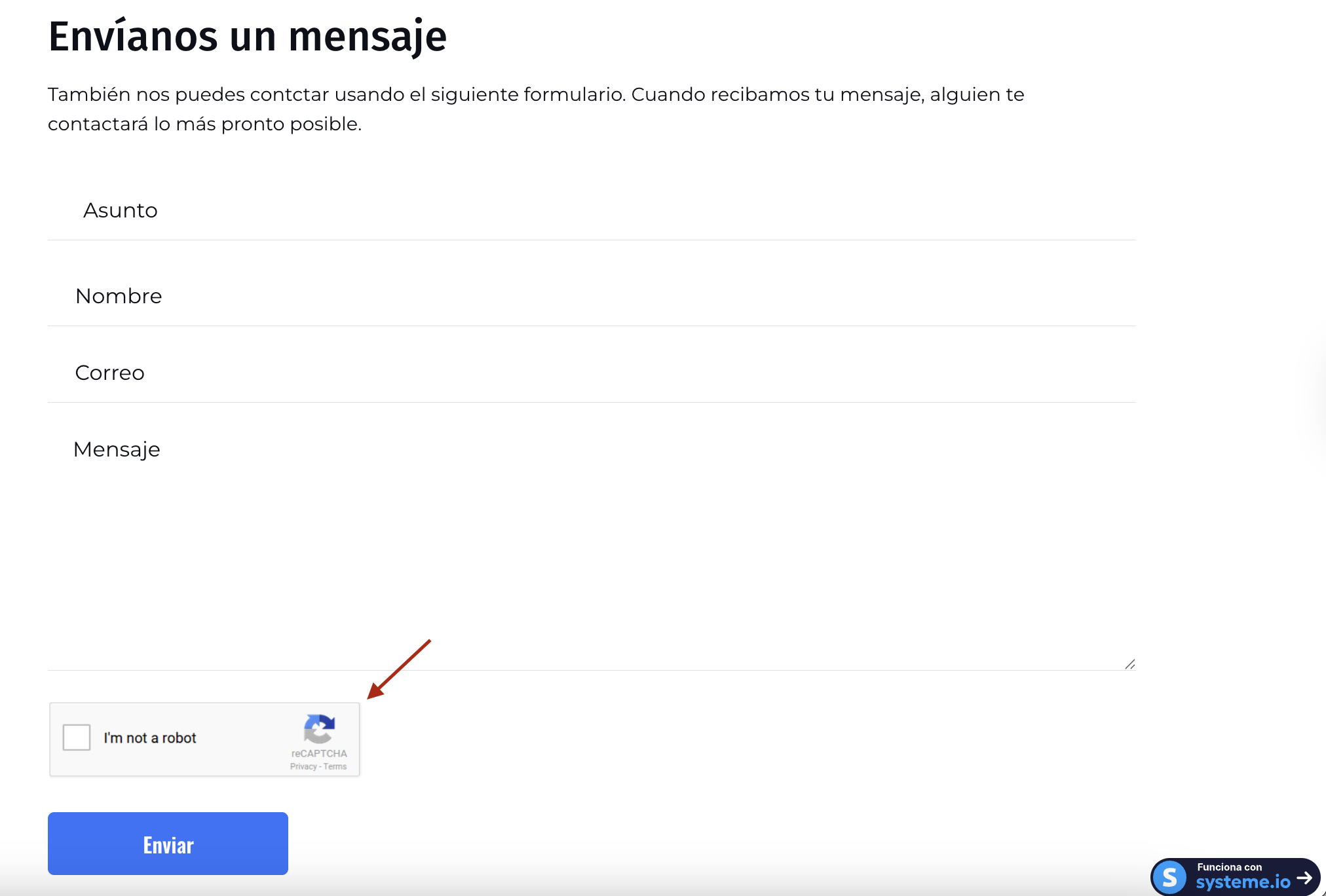 Ahora que tienes tus claves de reCAPTCHA y puedes integrarlas en tu página de contacto creada con systeme.io.