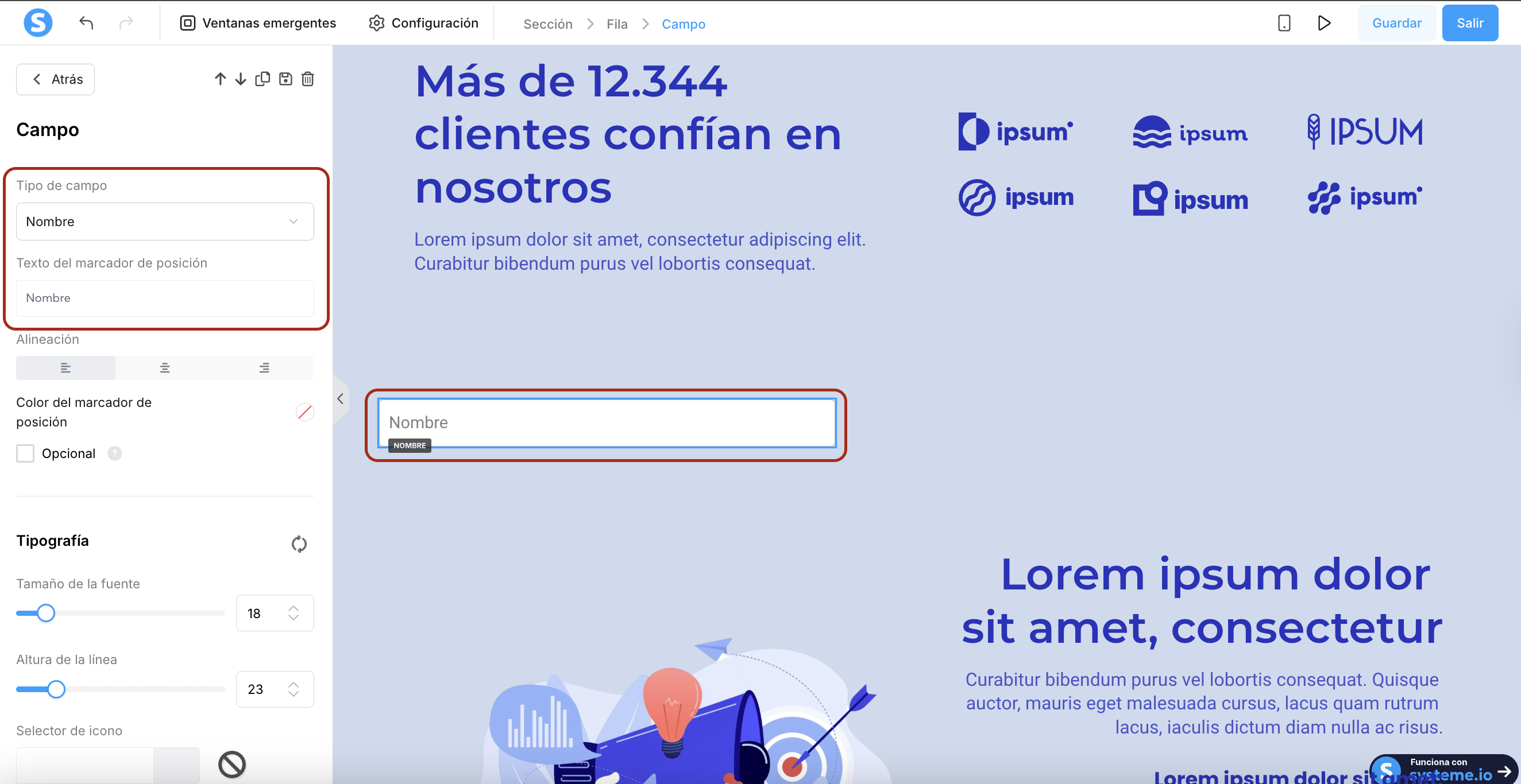 También puedes escribir la descripción del marcador de posición que será visible para tus leads antes de completar el campo.