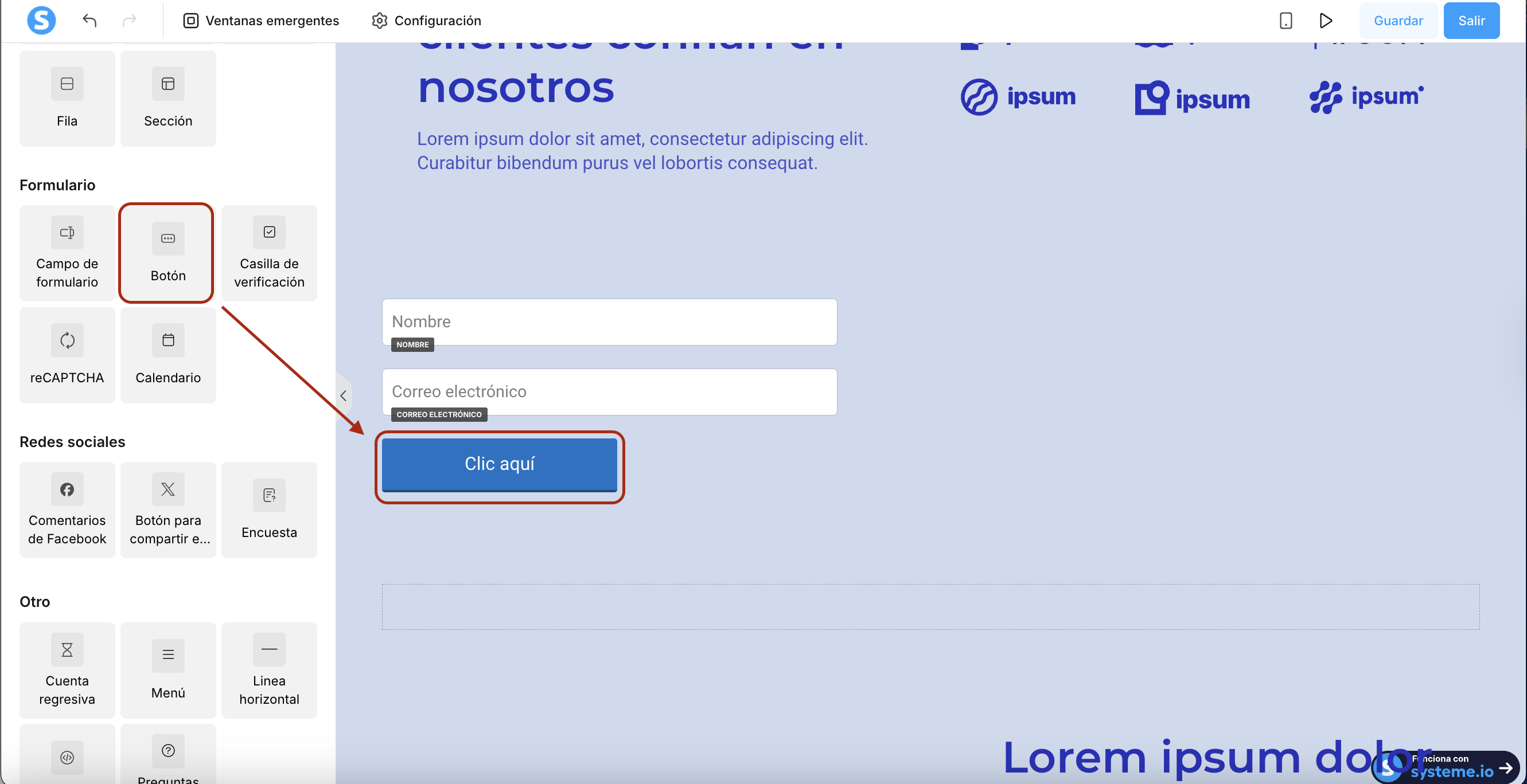 Nota: para que tu formulario capture leads de forma exitosa, debe contener al menos un campo de correo.
