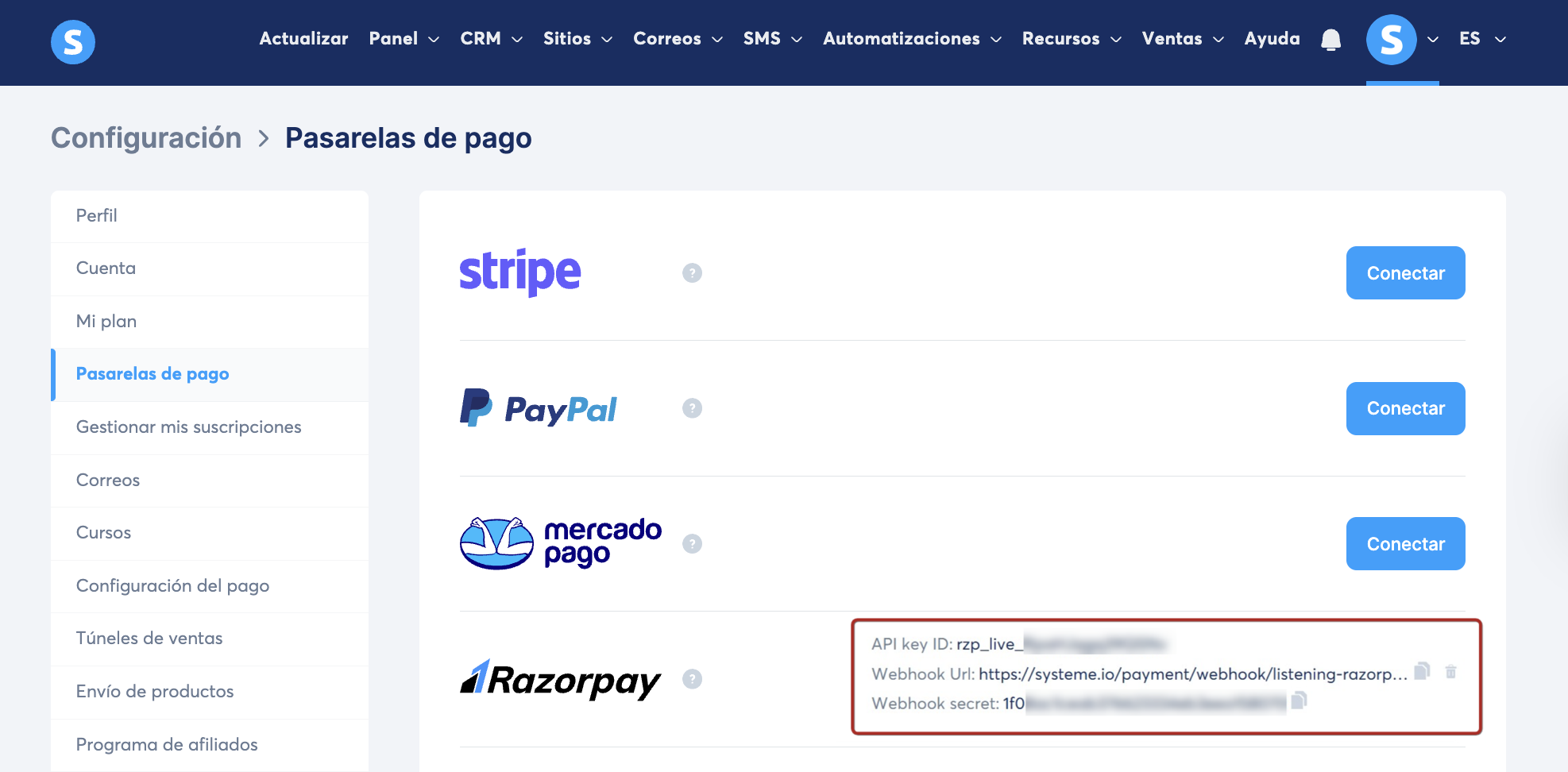 Cómo integrar Razorpay con systeme.io
