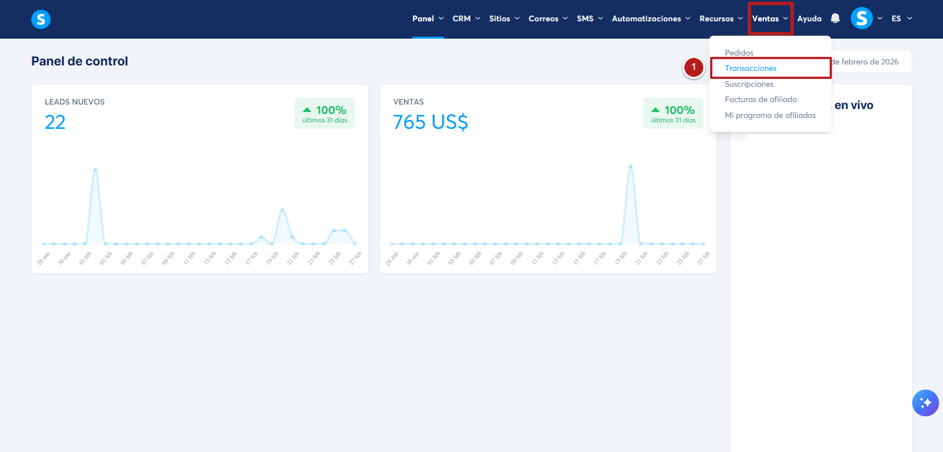 INavega a la pestaña Ventas, y haz clic en Transacciones (1).