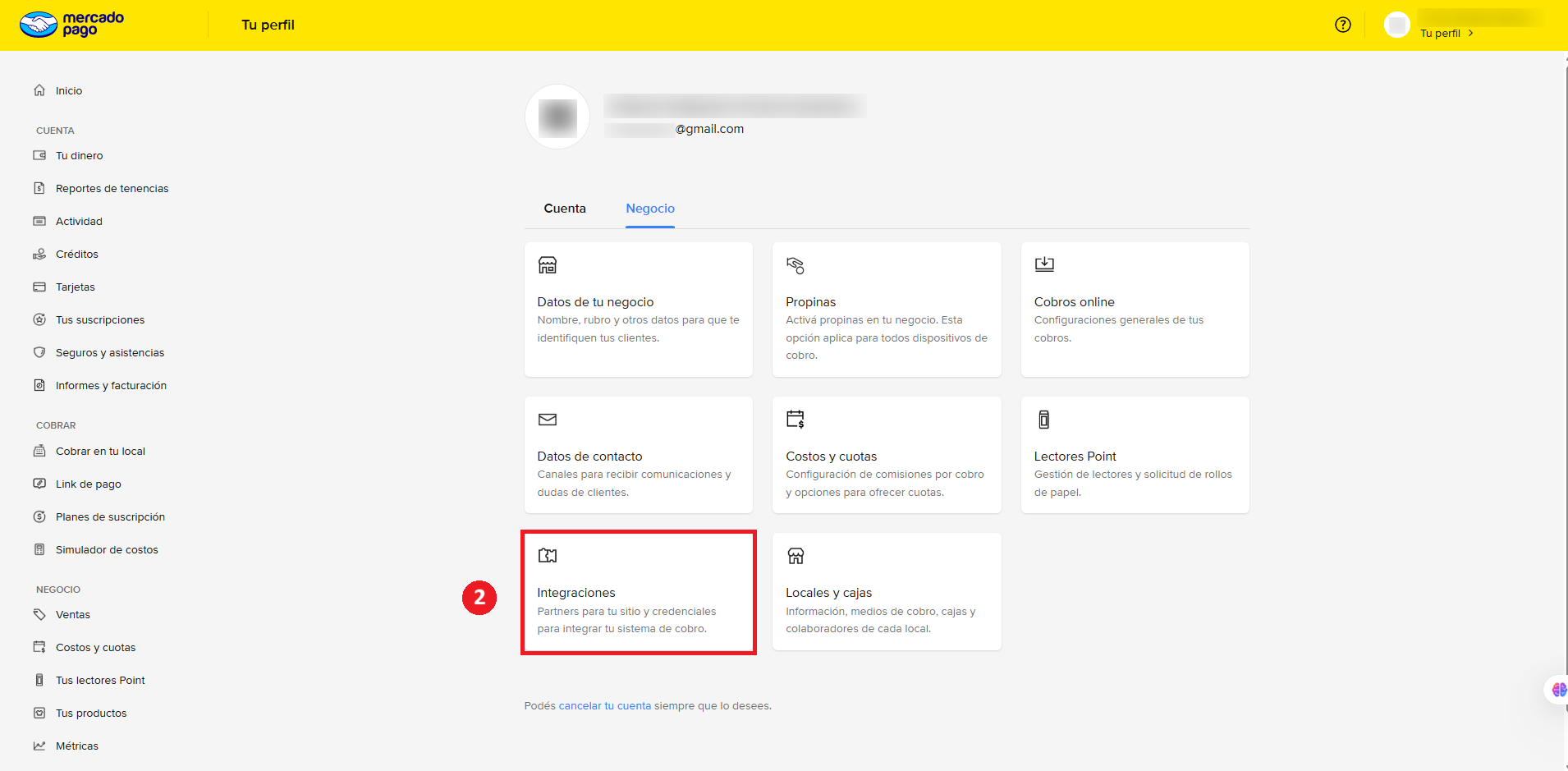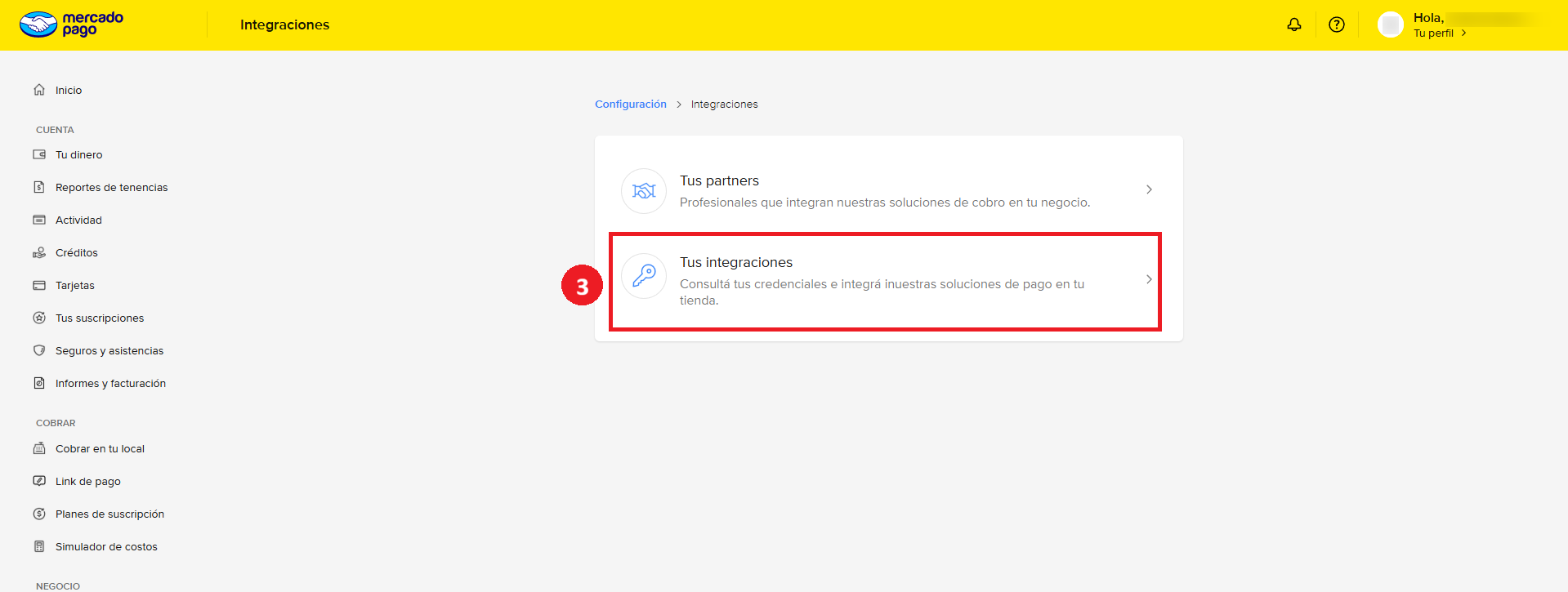 1.3. Luego, haz clic en "Tus integraciones" (3)
