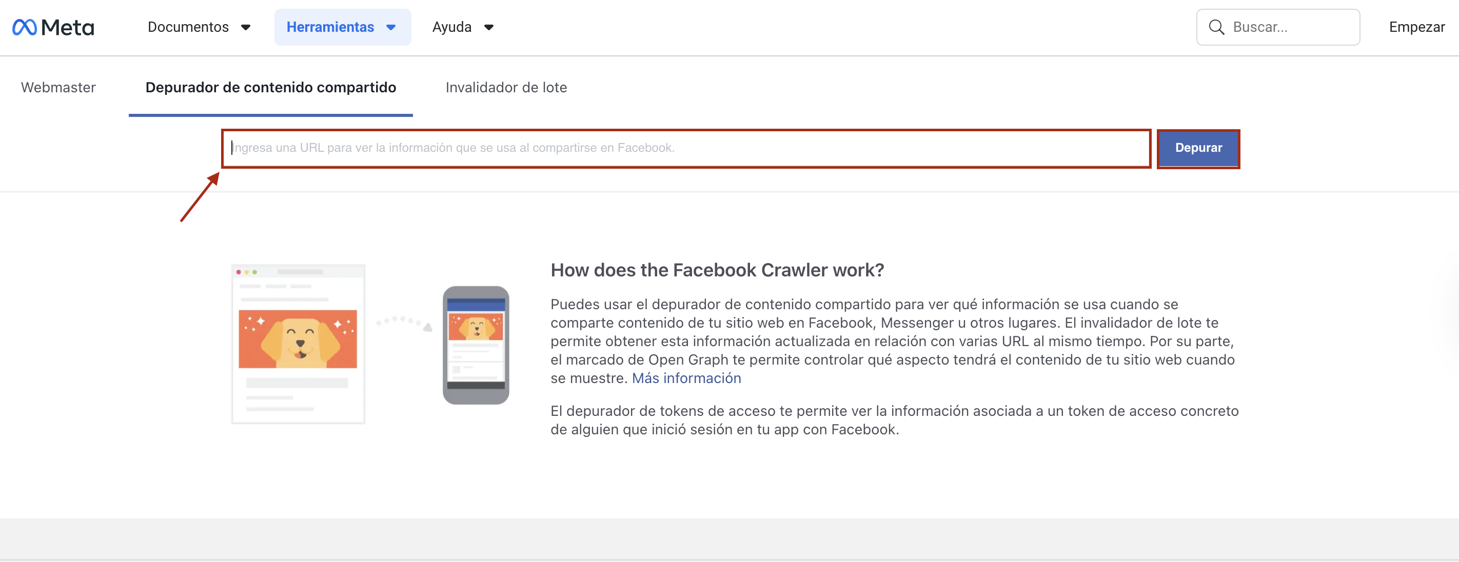 2. Abre tu navegador e ingresa a Depurador de contenido compartido de Meta haciendo clic AQUÍ.