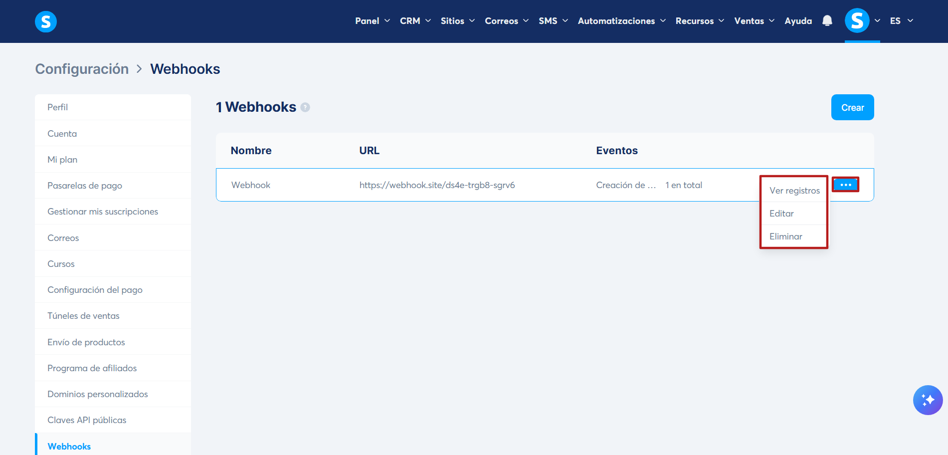 Para configurar un webhook en tu cuenta de systeme.io, sigue estos sencillos pasos: