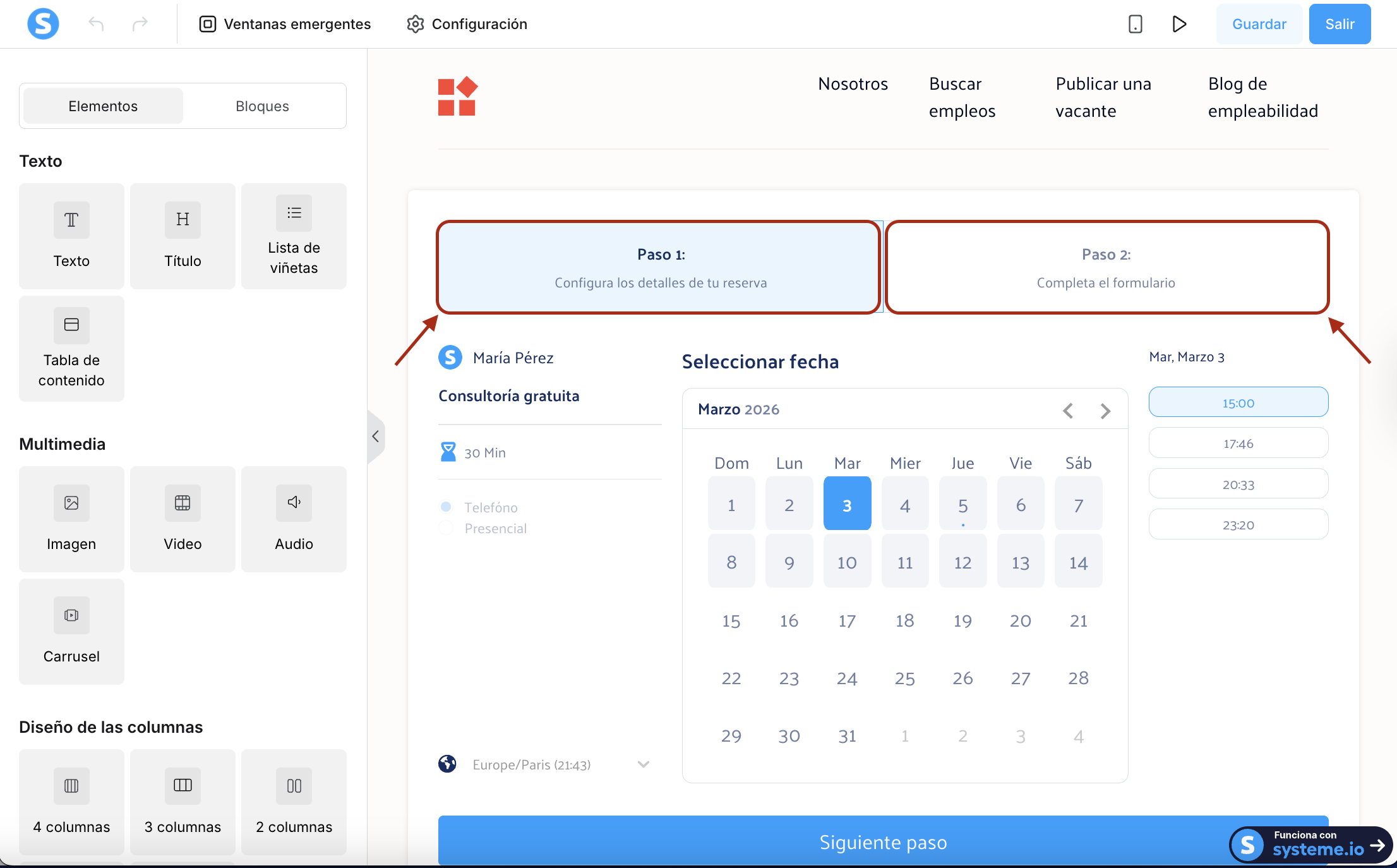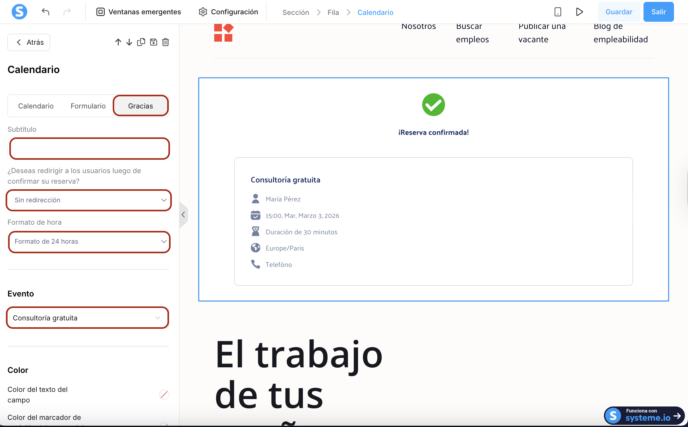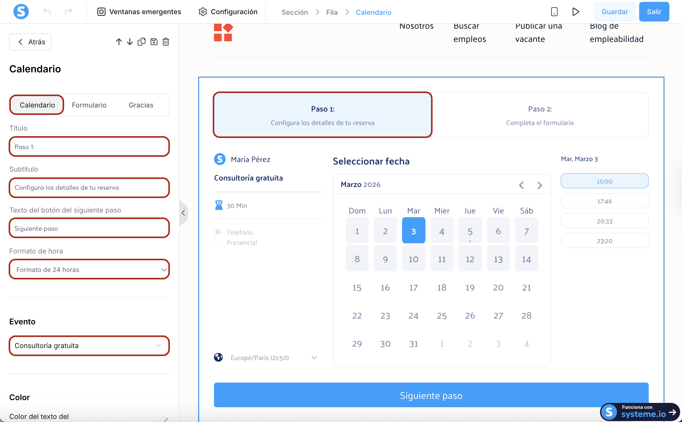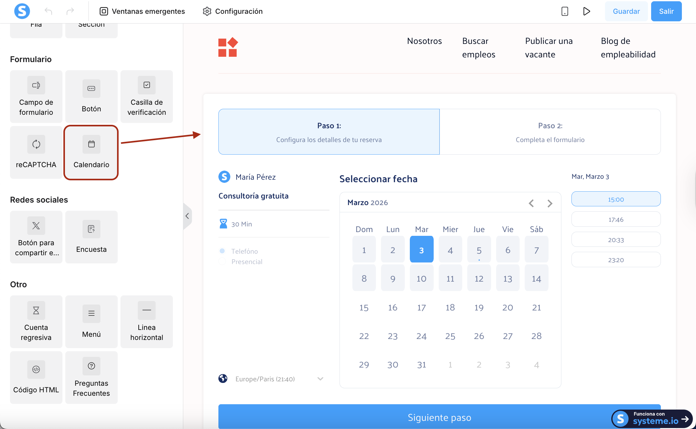 Cómo agregar el calendario de systeme.io en tus páginas