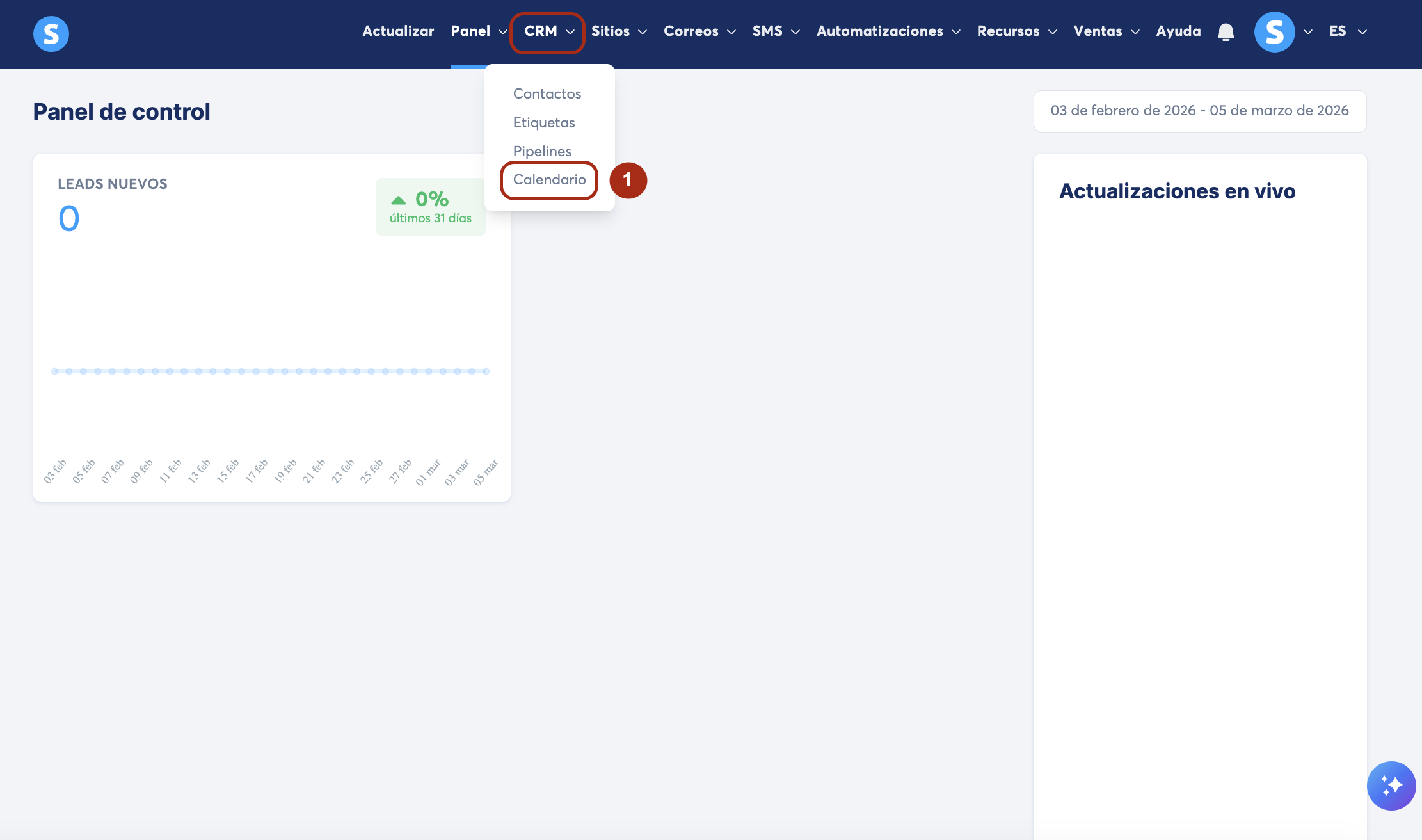 Puedes acceder a la sección Calendario desde el menú CRM en systeme.io.
