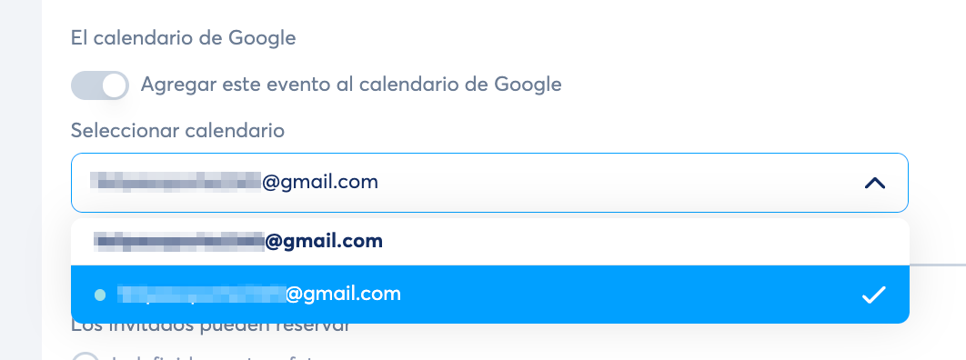 Seleccionar calendario: elige en cuál calendario de Google quieres guardar tus reservas. Esto te permite organizar tus eventos en diferentes calendarios en lugar de usar tu calendario predeterminado. Simplemente selecciona el calendario de tu preferencia desde el menú desplegable.