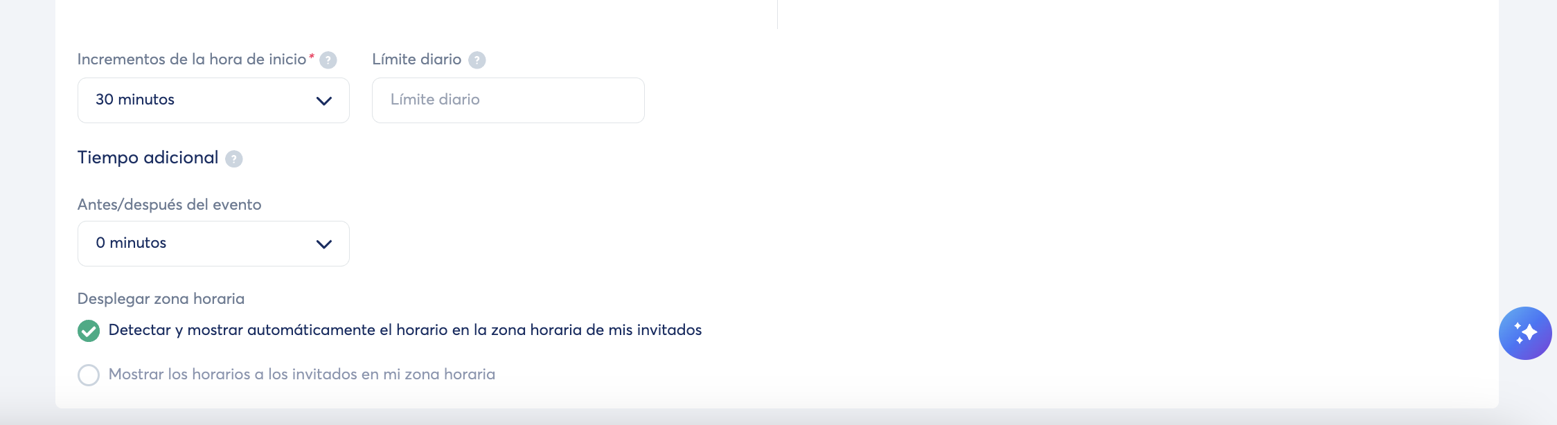 - Zona horaria: elige si la hora de la cita se muestra en la zona horaria del invitado o del anfitrión.