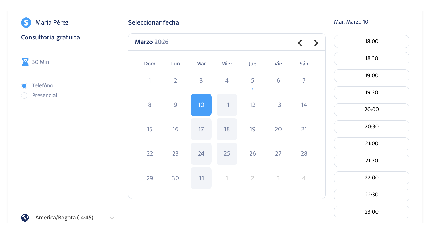 - Evento grupal: varias personas pueden reservar la misma franja horaria. Es ideal para webinars en vivo, talleres grupales o clases en línea.
