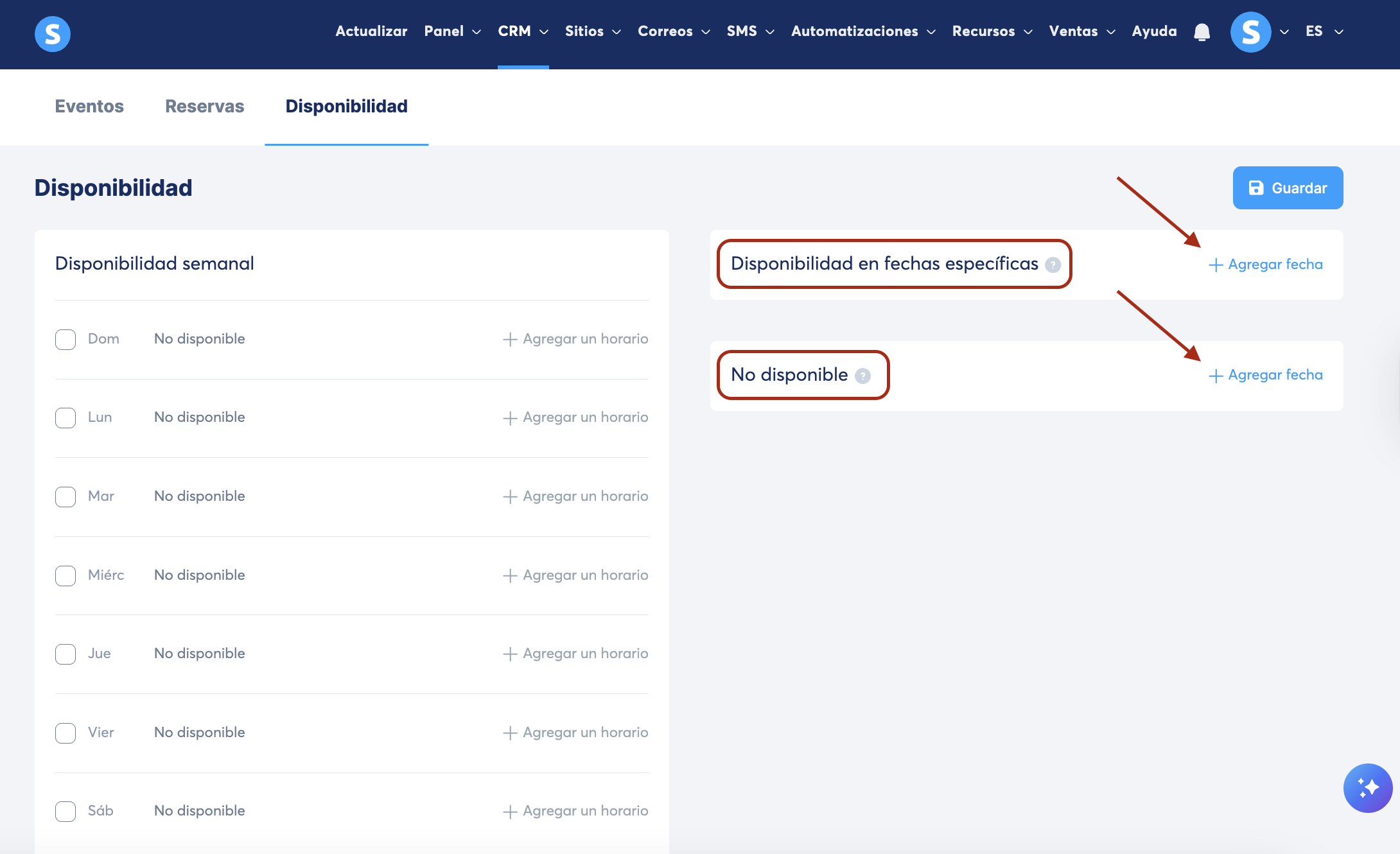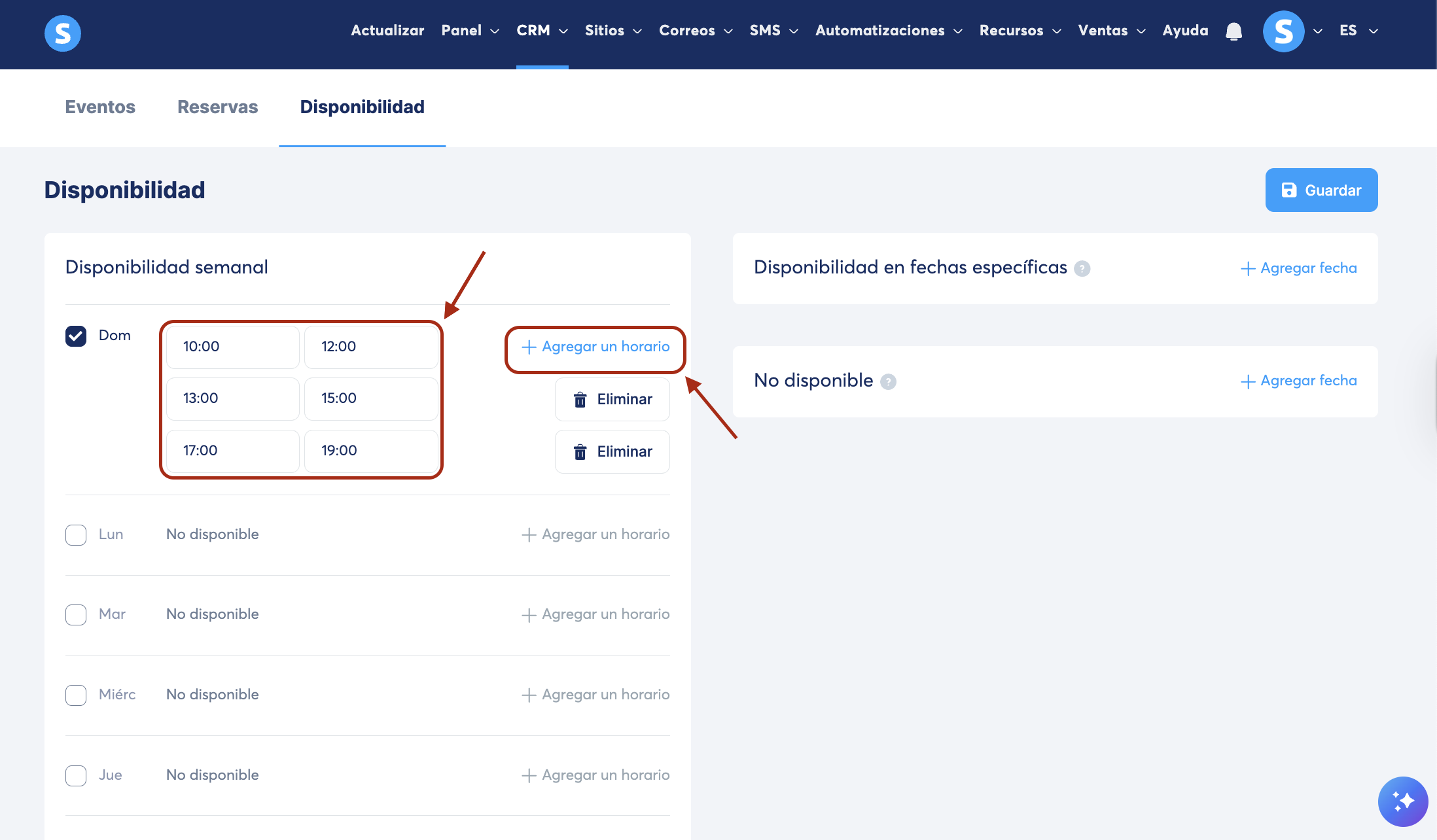 En esta sección, puedes configurar la disponibilidad para un evento específico.