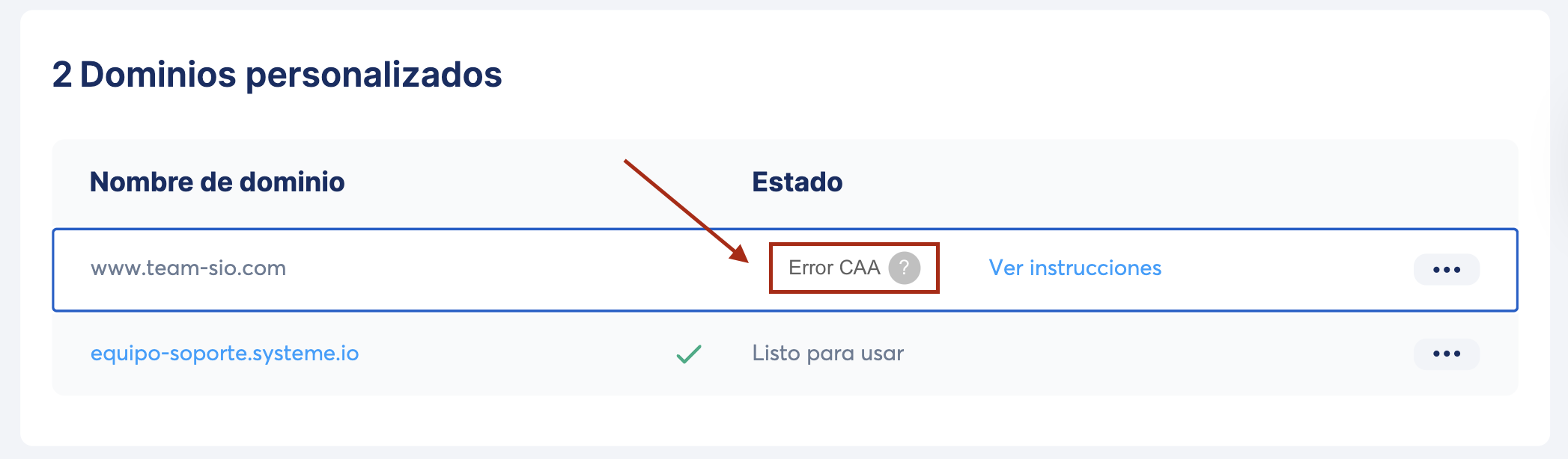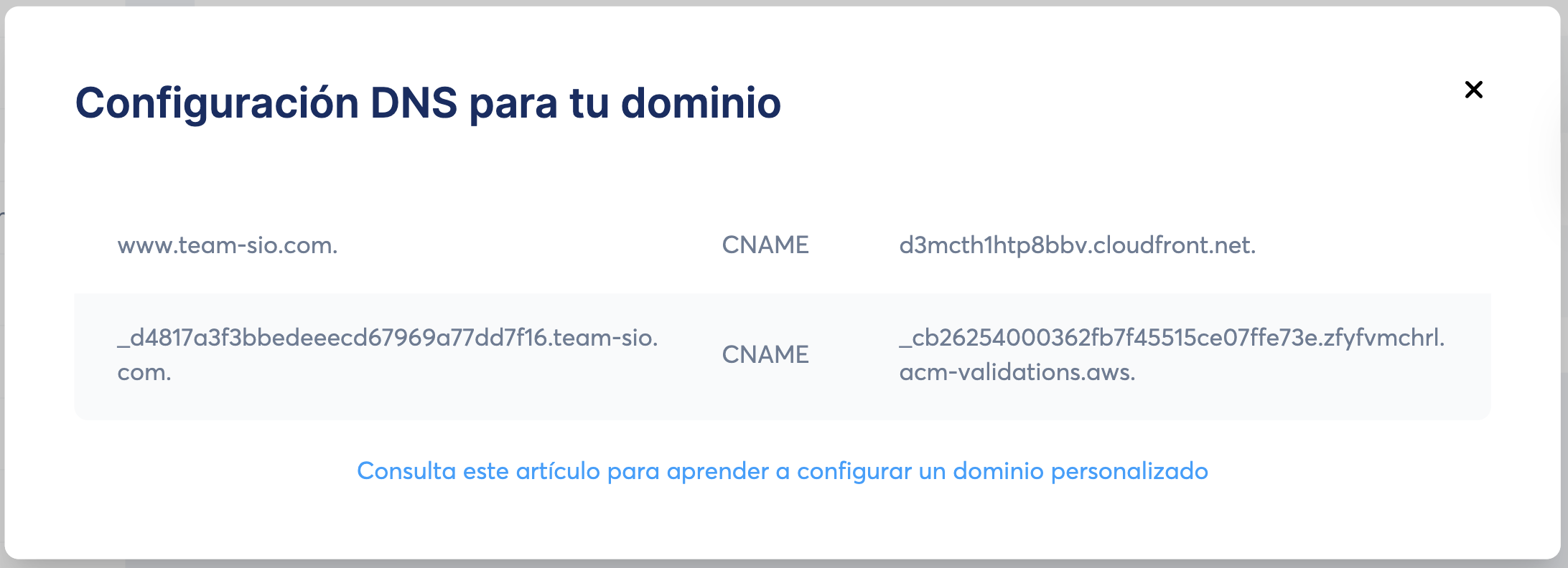 Nota: Cada dominio agregado a systeme.io tiene sus propios registros CNAME para integrar en el sitio de alojamiento.