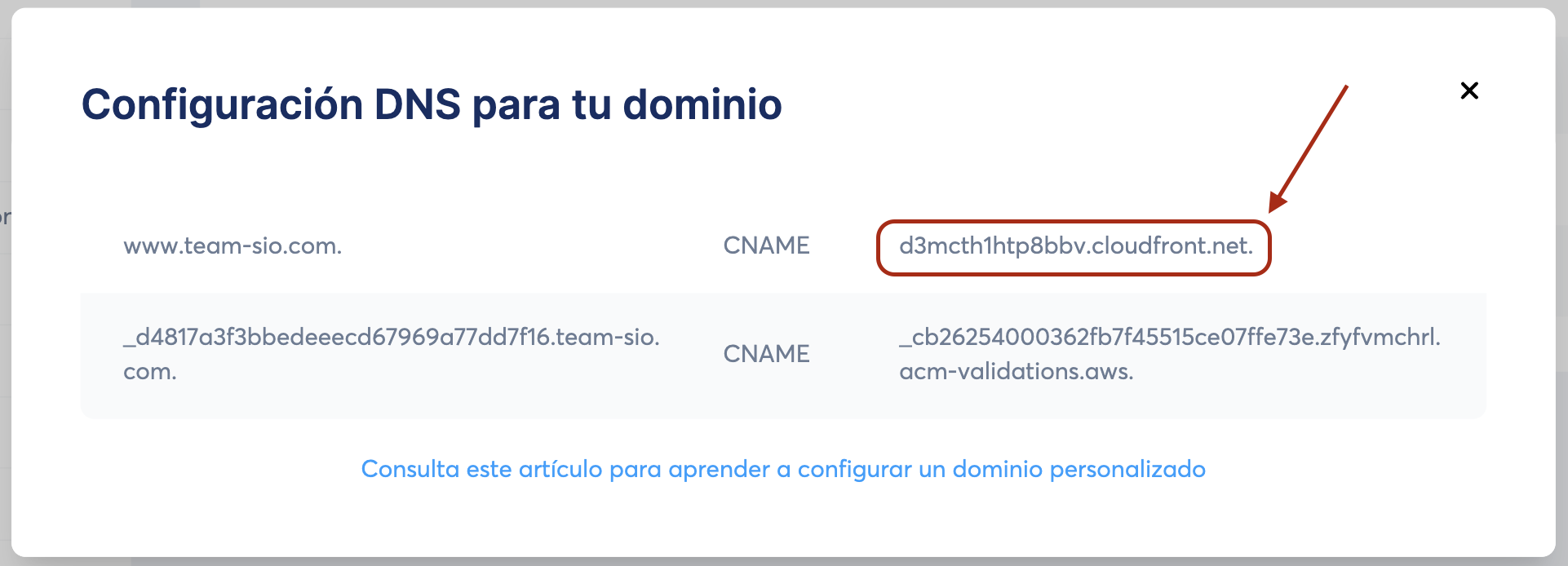 Nota: Si existe un registro CNAME con el nombre "www", edita el objetivo a "d3mcth1htp8bbv.cloudfront.net."