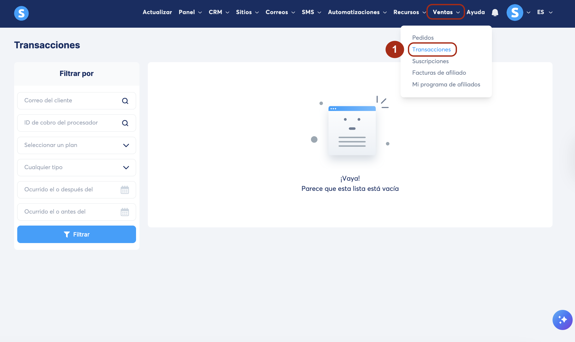 Ve a la pestaña Ventas y haz clic en Transacciones (1).