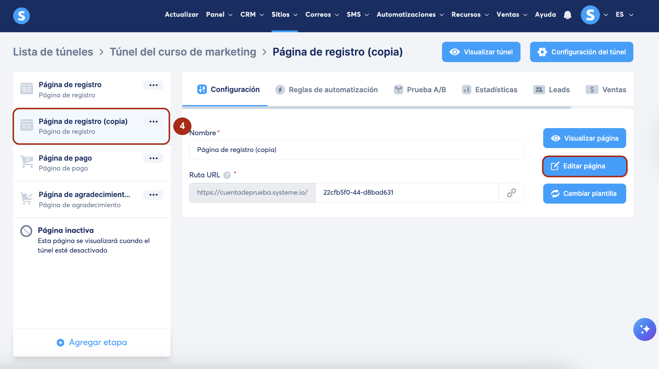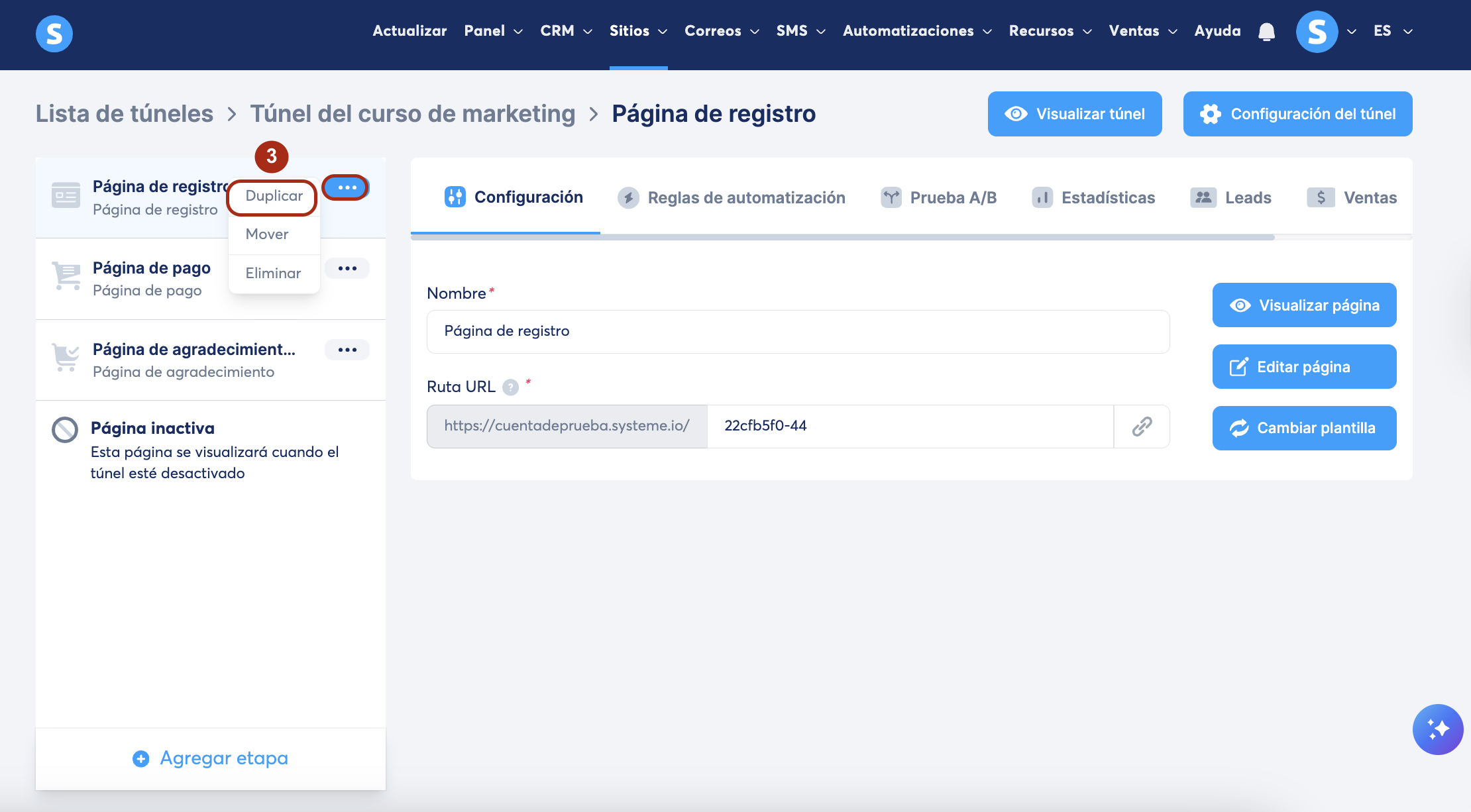 2. Duplicar una página de un túnel de ventas: