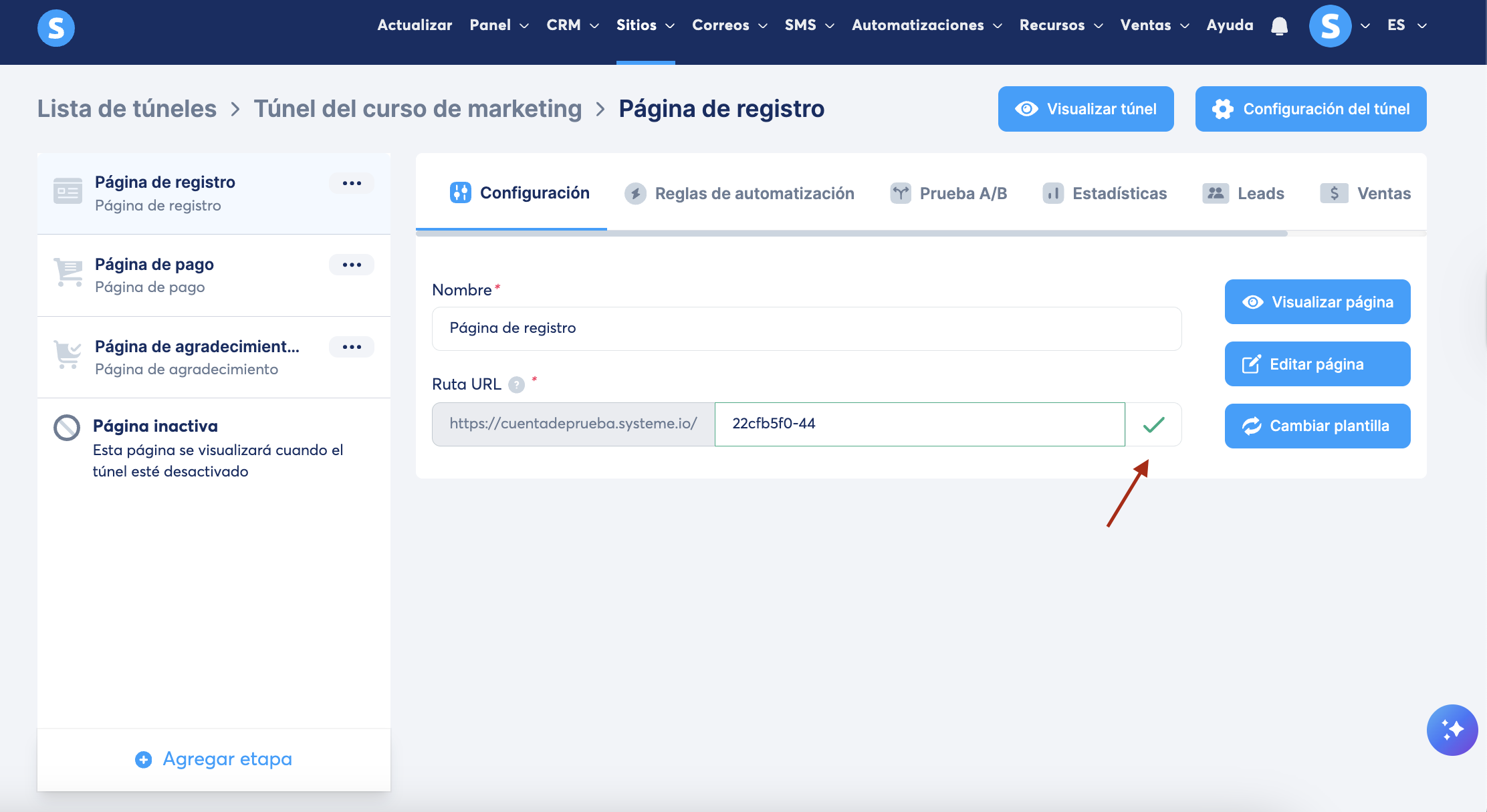 En este artículo aprenderás a cambiar la ruta URL de una página de systeme.io.
