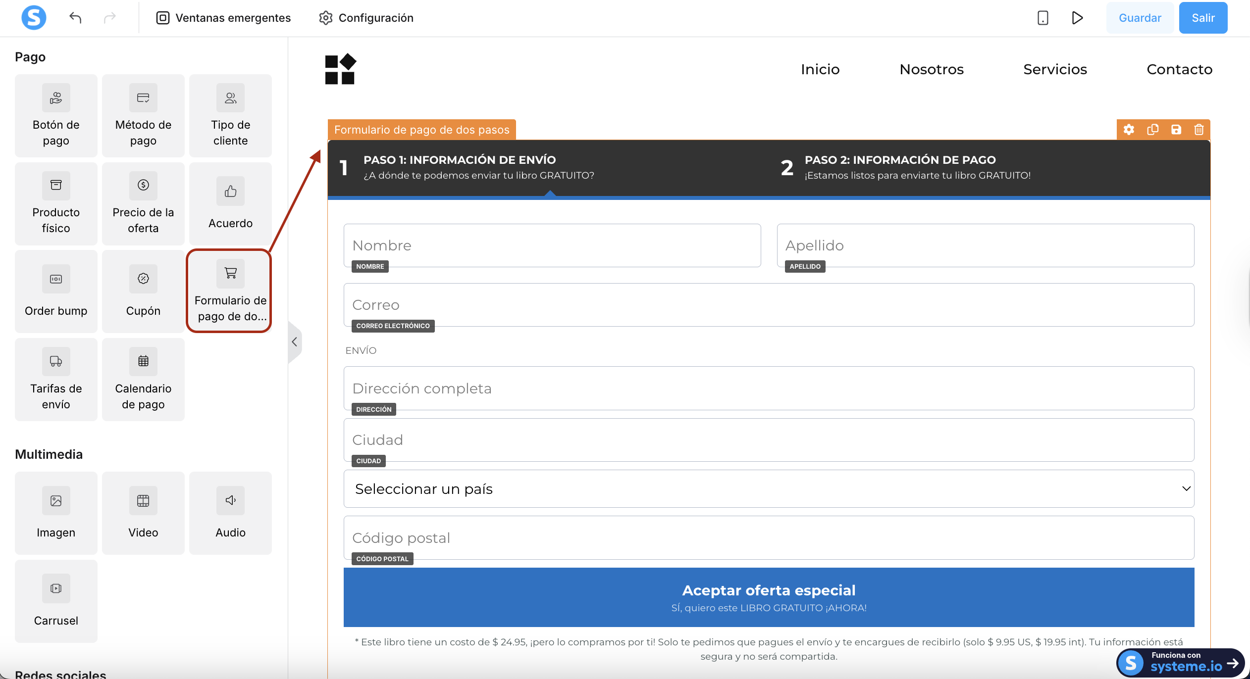 Este artículo explica qué es un formulario de pago de dos pasos y cómo configurarlo en systeme.io.