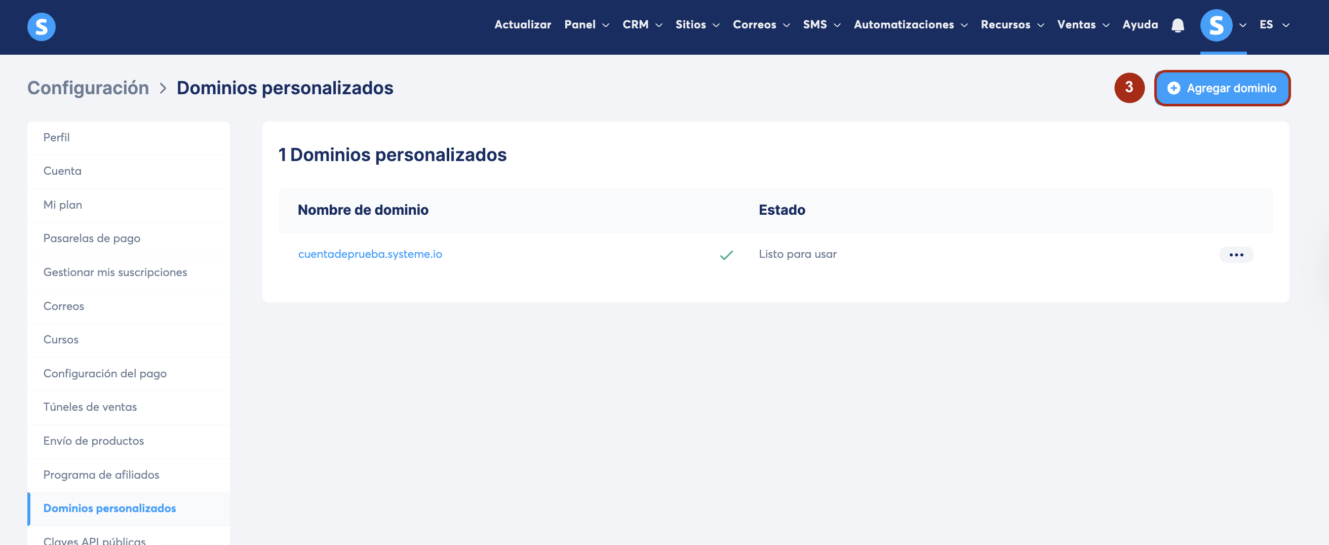 Paso 1: en tu cuenta de systeme.io