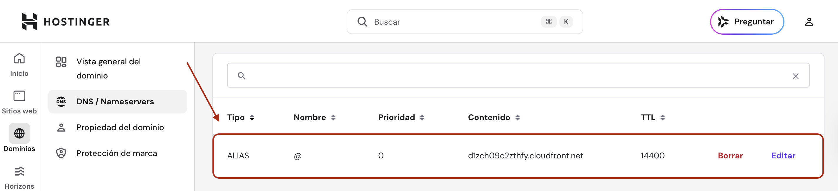 Paso 3.1: Crear un registro ALIAS con la raíz (Hostinger)