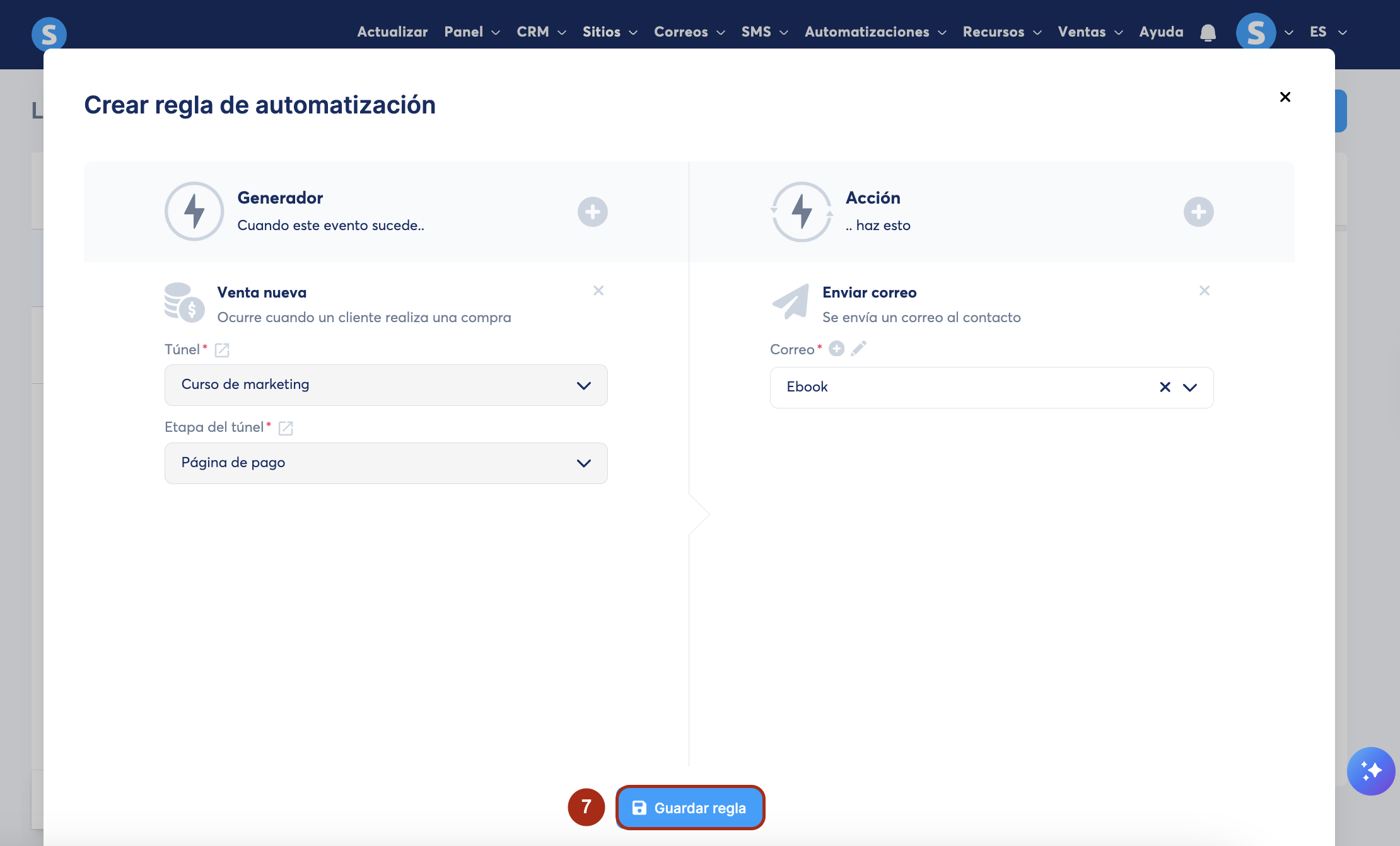 Luego, crea una regla de automatización con el generador Venta nueva, el cual se activa cuando alguien compra la oferta.