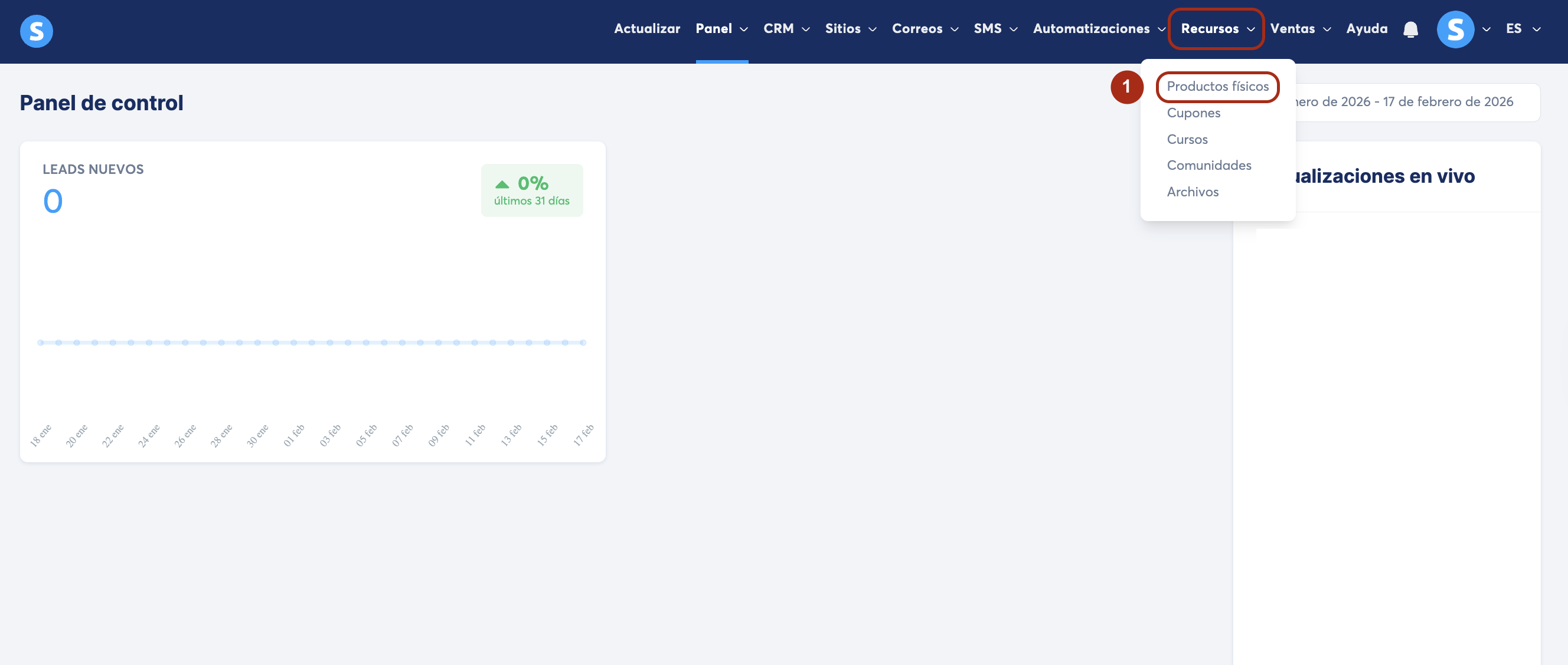 1.1. Ve a Recursos y haz clic en Productos físicos