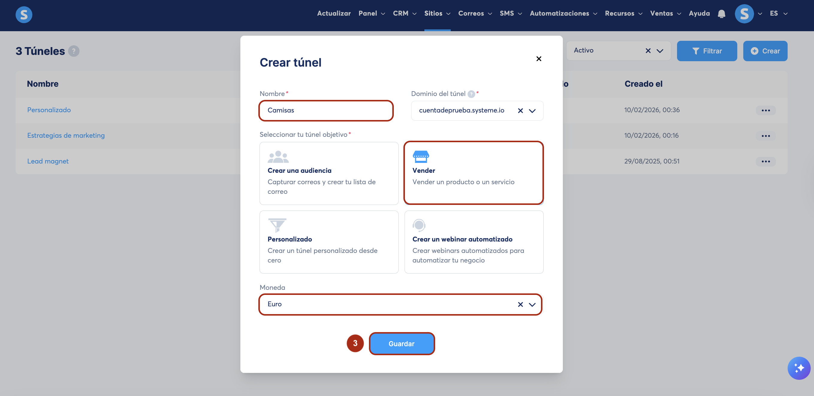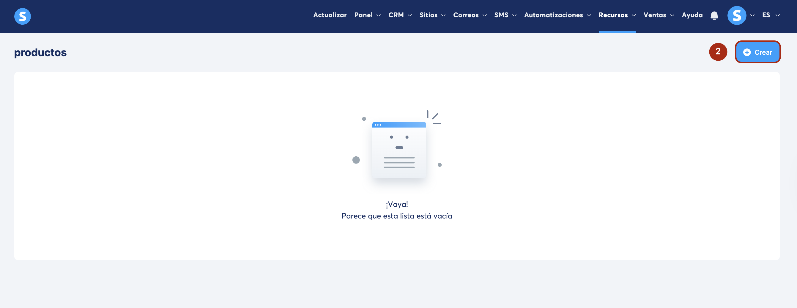 1.2. Haz clic en Crear (2) para empezar la configuración