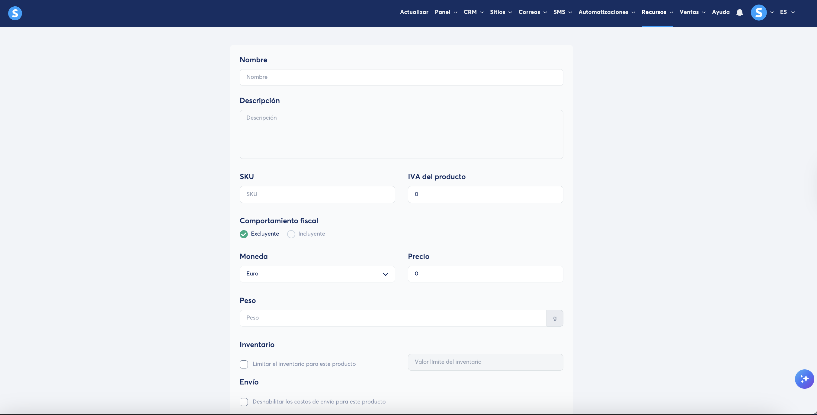 - Envío: permite activar o desactivar tarifas de envío para el producto