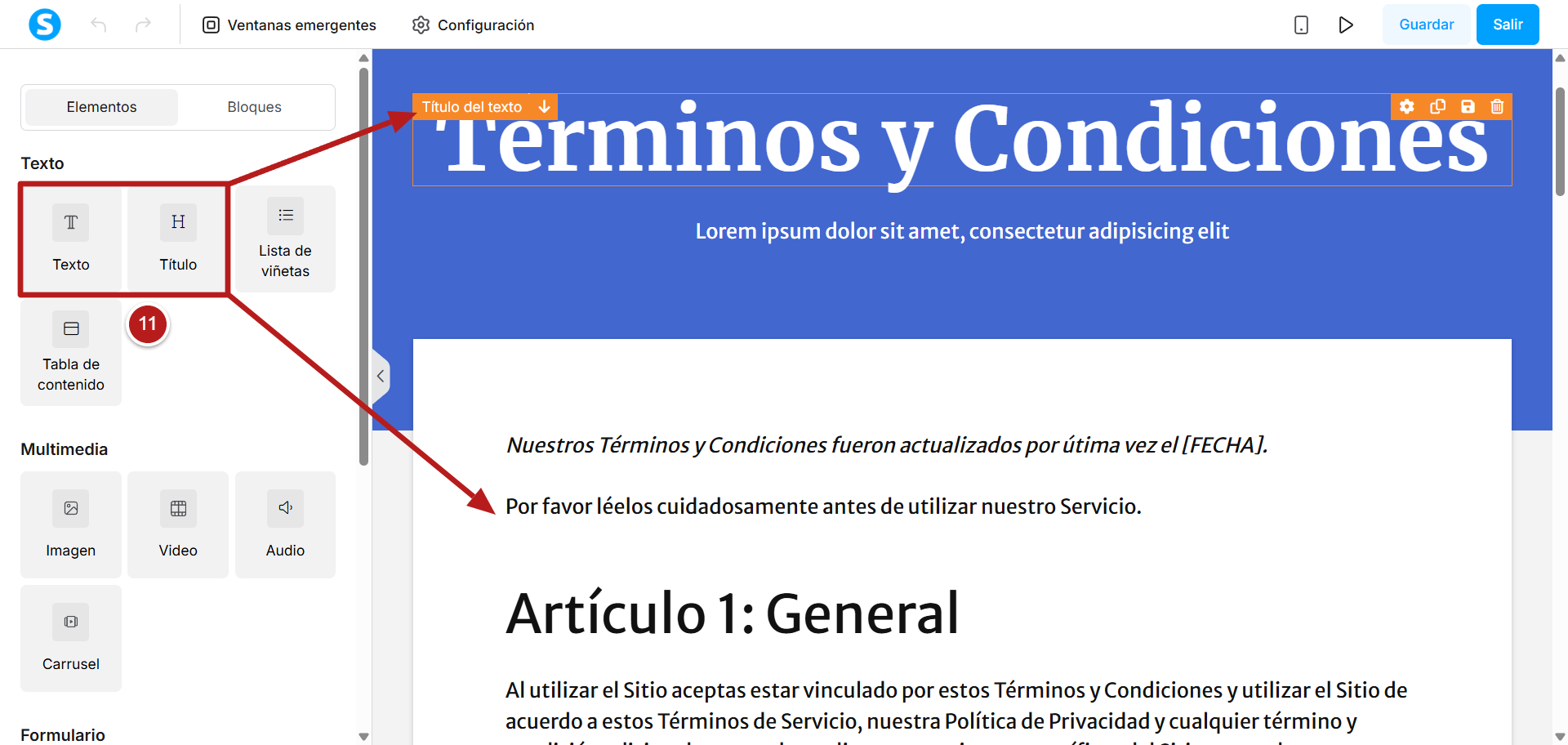 Añade un elemento de texto que contenga tus Términos y Condiciones en esta página (11)