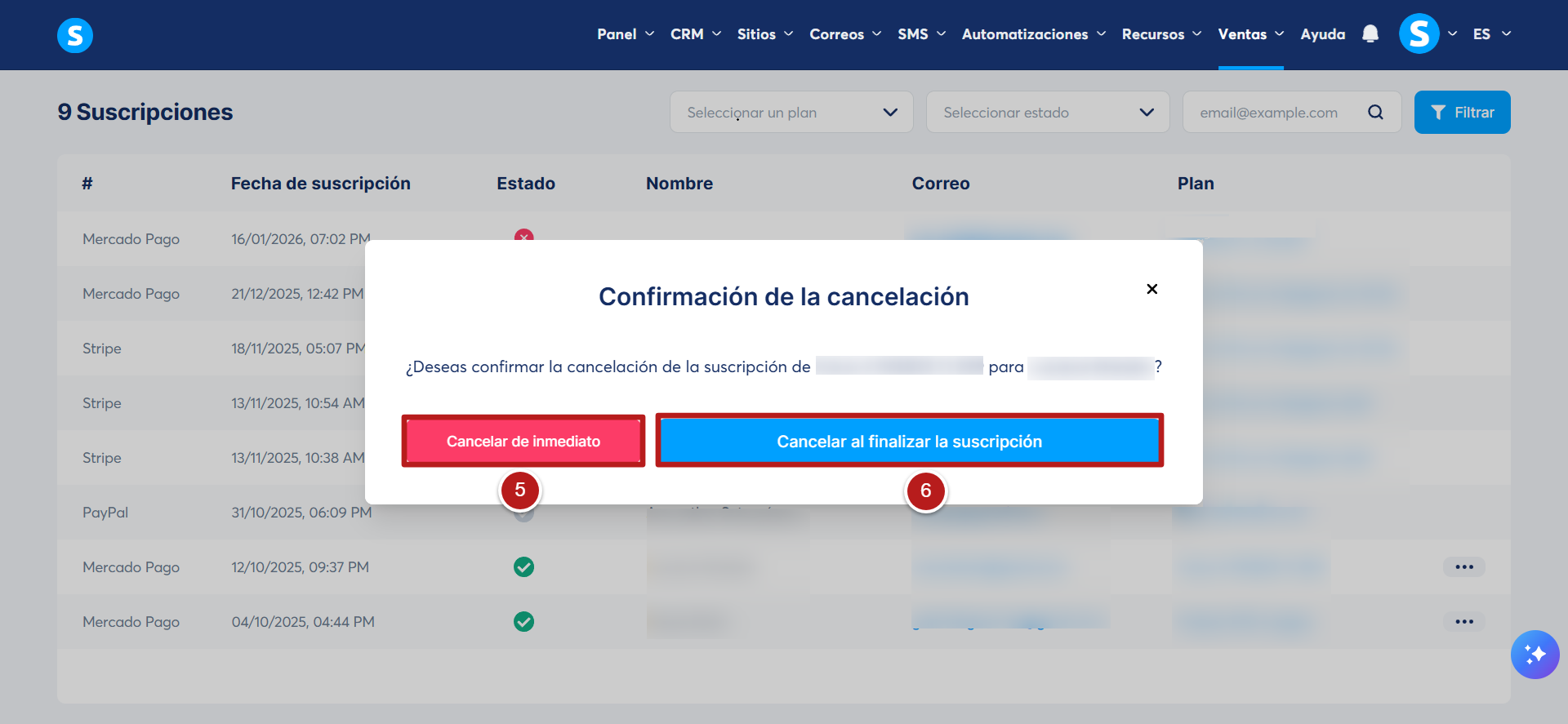 En este artículo, aprenderás a cancelar manualmente la suscripción de un cliente.