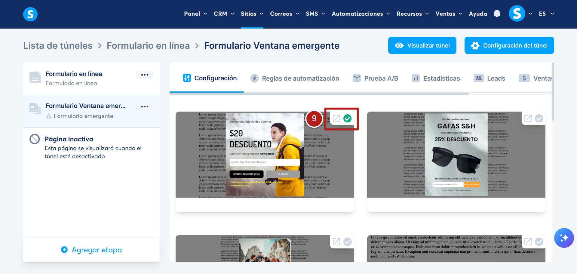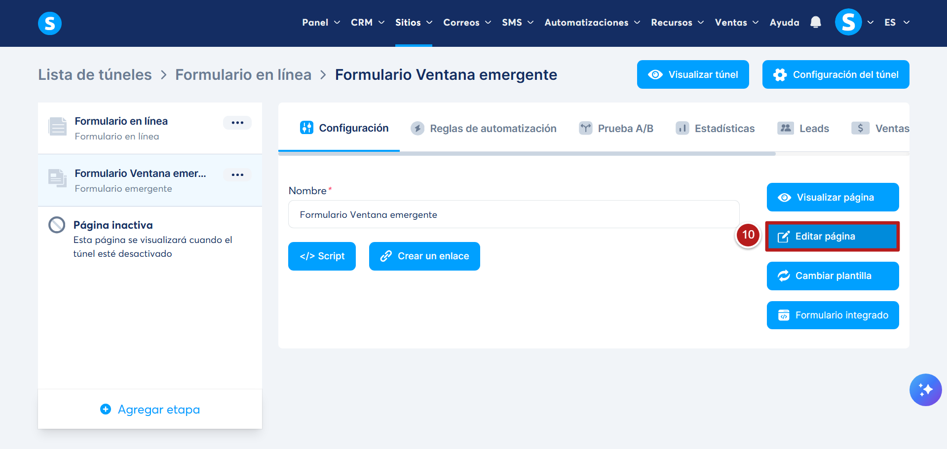 Edita tu formulario popup haciendo clic en Editar página (10).