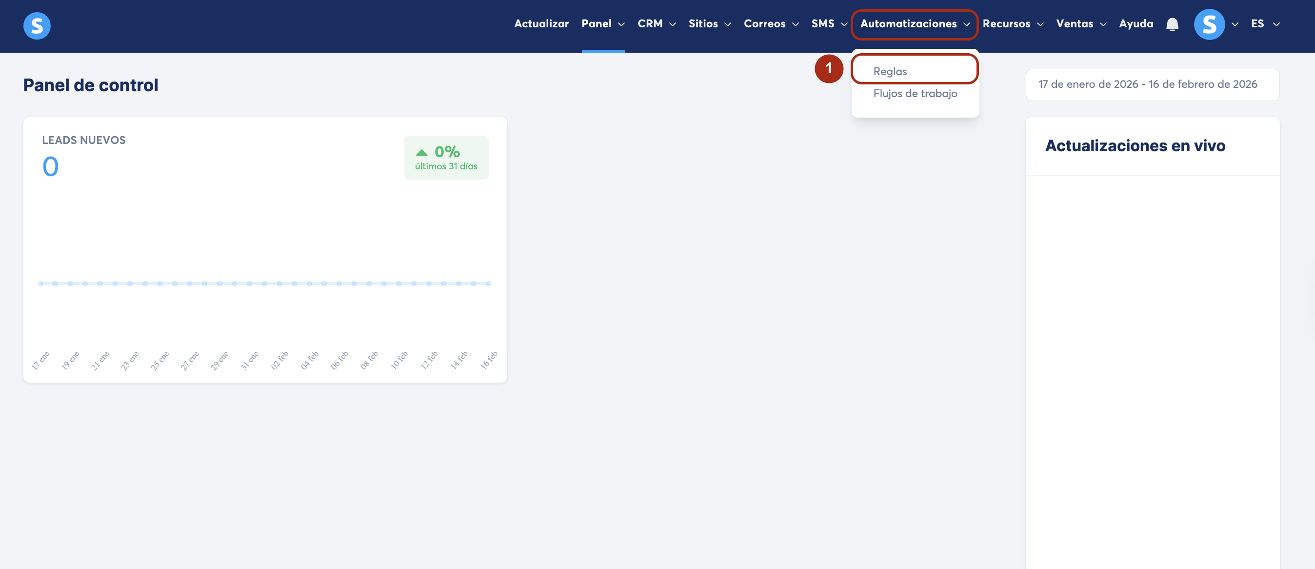Haz clic en la pestaña Automatizaciones, luego en Reglas (1).