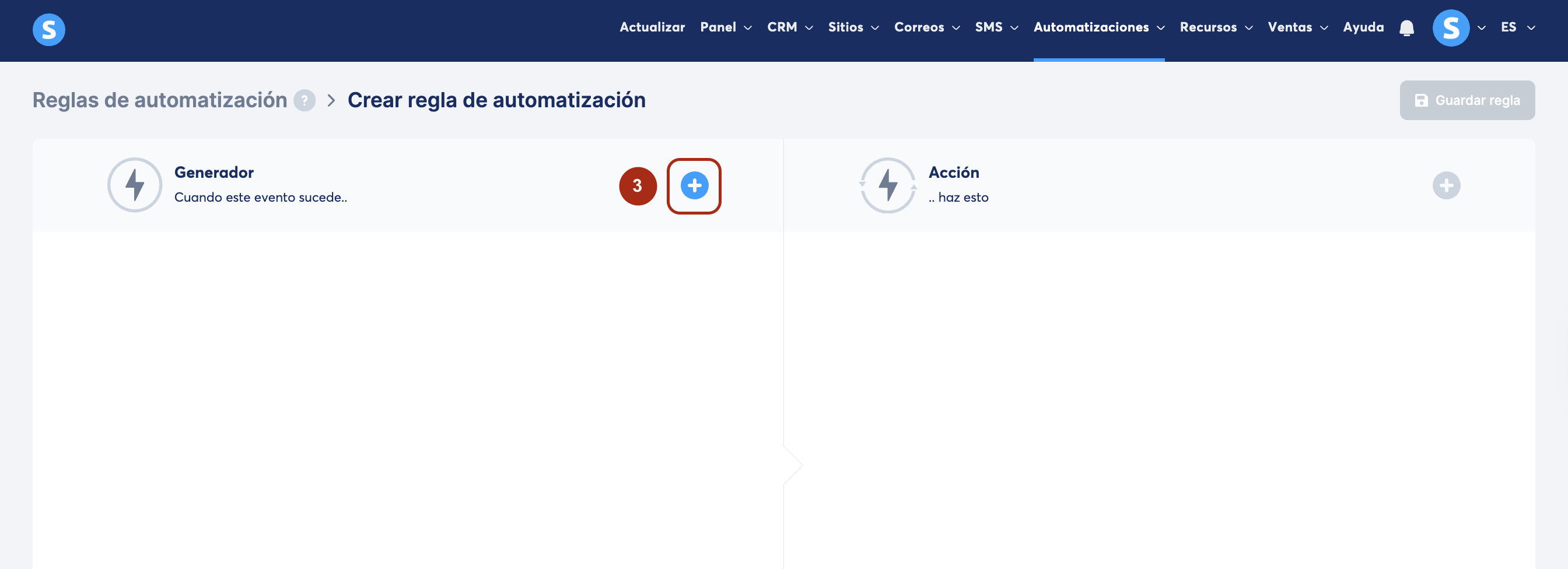 El generador es un evento que especifica cuándo activar la regla de automatización.