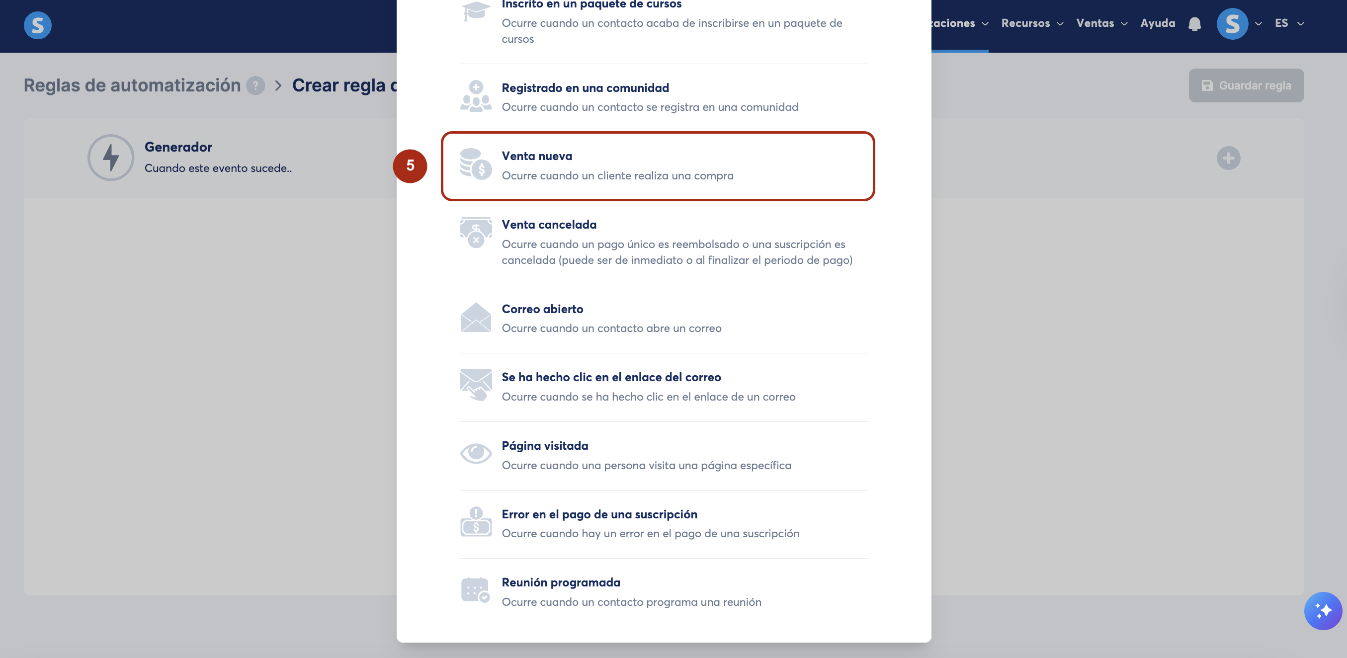 2) Para enviar a los clientes que han comprado mi producto, selecciona Venta Nueva (5).