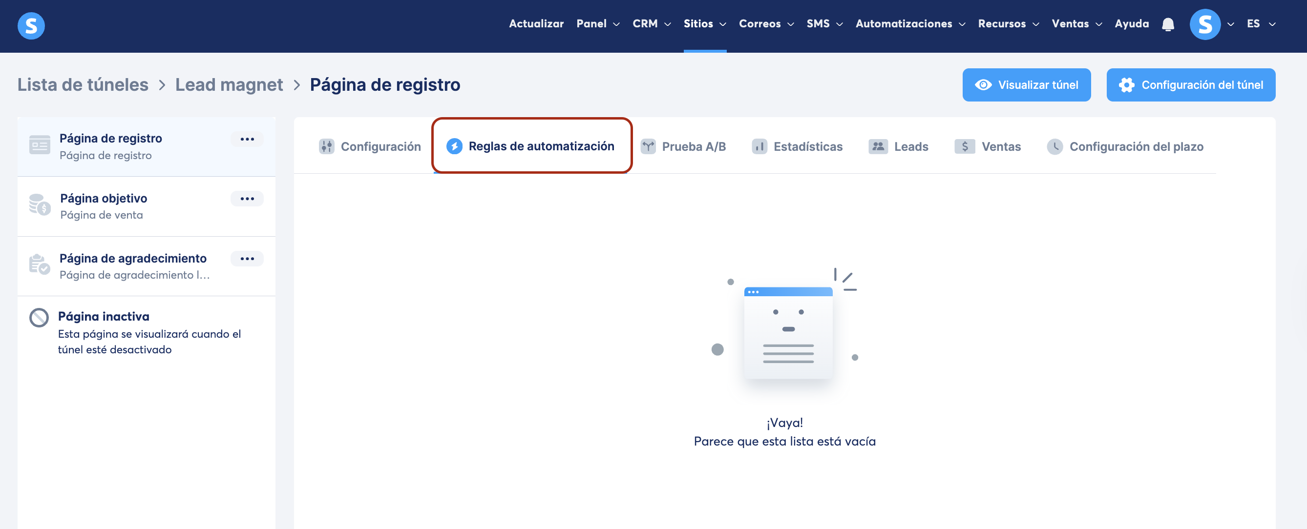 También puedes crear reglas de automatización directamente desde el editor de tus túneles: