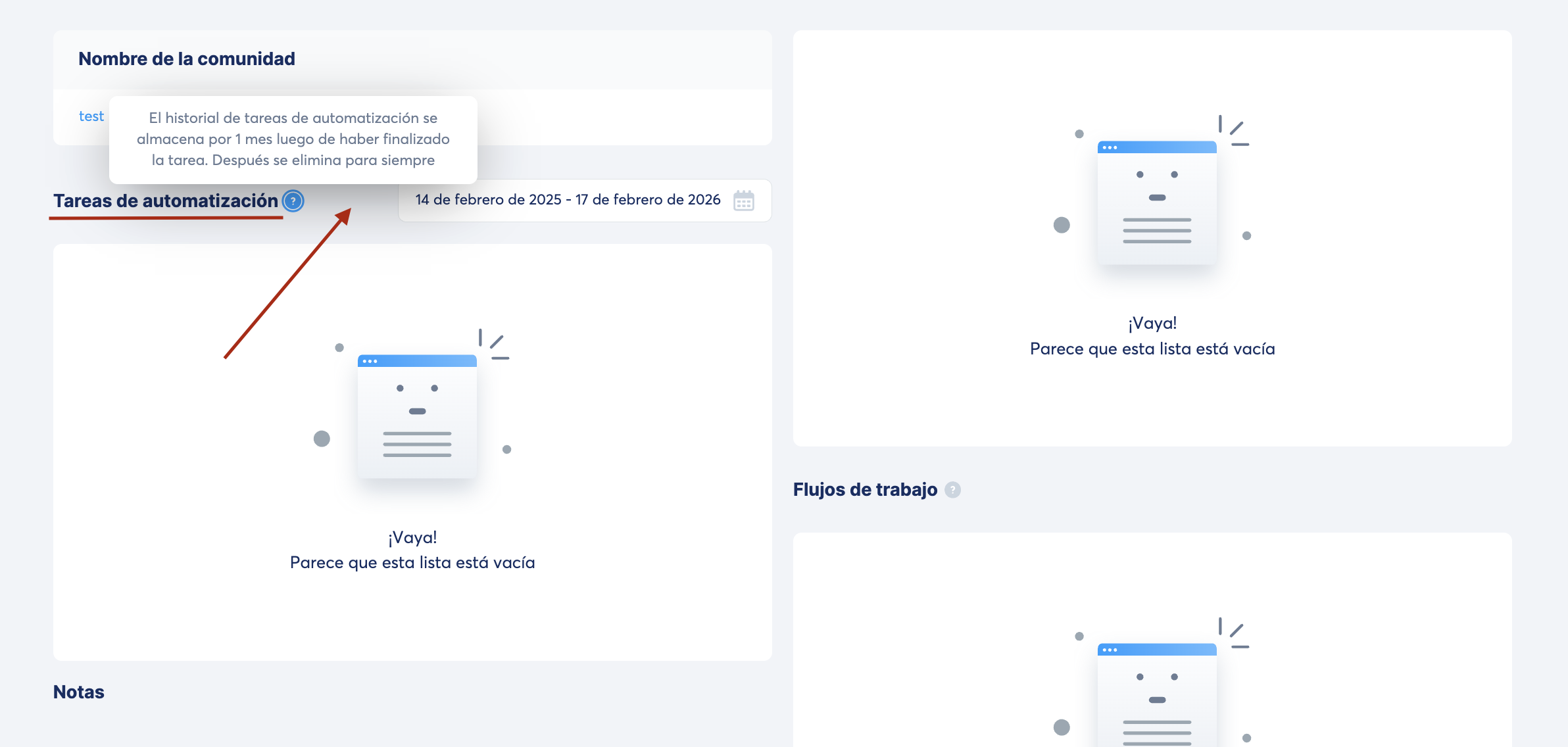 El historial de las reglas de automatización solo se guarda por un mes. Después de este periodo, será eliminado automáticamente del sistema, como parte de la limpieza y optimización de la información.