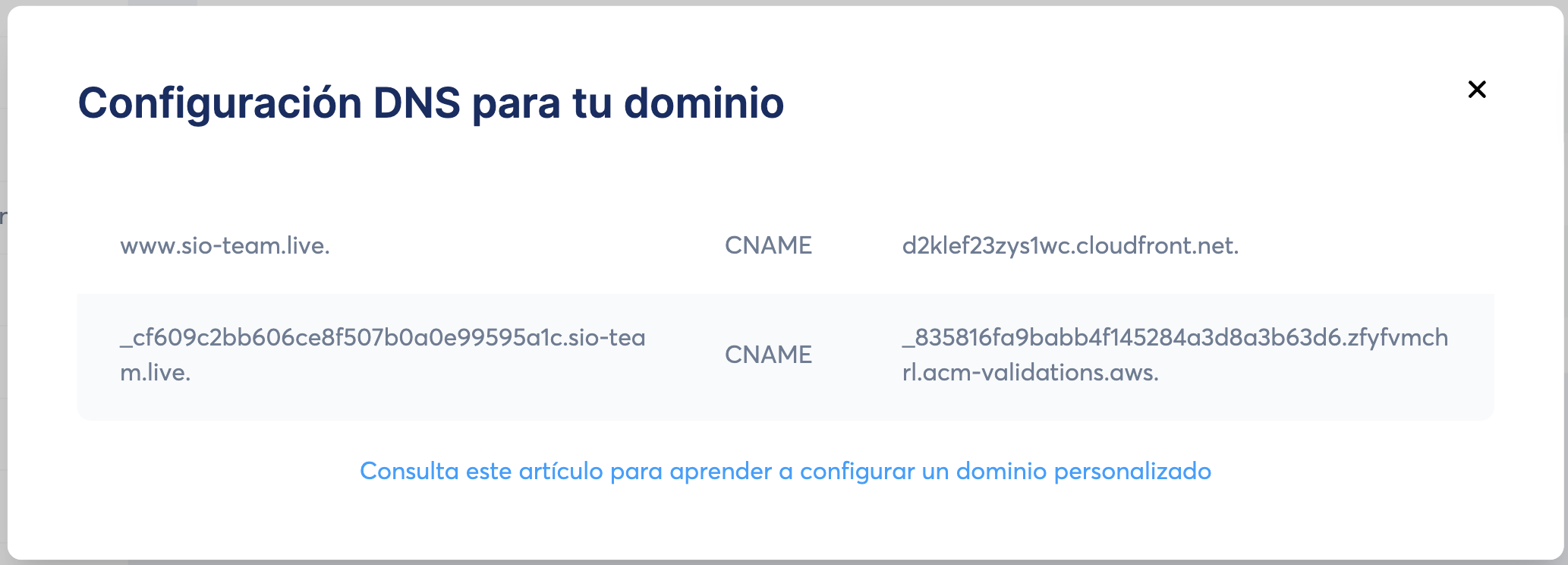 Una vez que los dos CNAME estén correctamente agregados a tu proveedor de alojamiento, puedes verificar su estado usando la siguiente herramienta: https://dnschecker.org