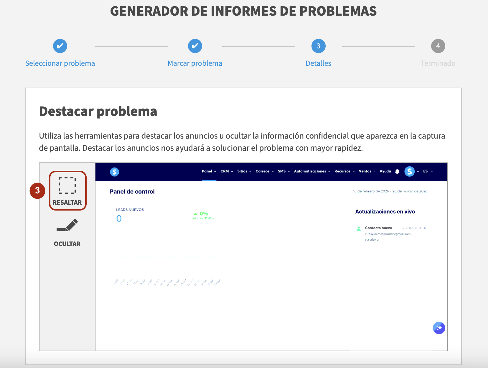 Luego, usa la herramienta Resaltar para mostrar dónde está el problema (3).