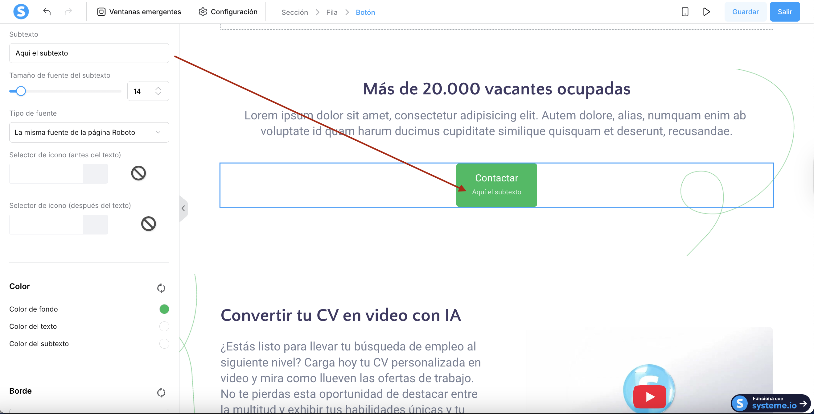 - El campo Subtexto (4) te permite establecer el texto a mostrar debajo del texto principal del botón.