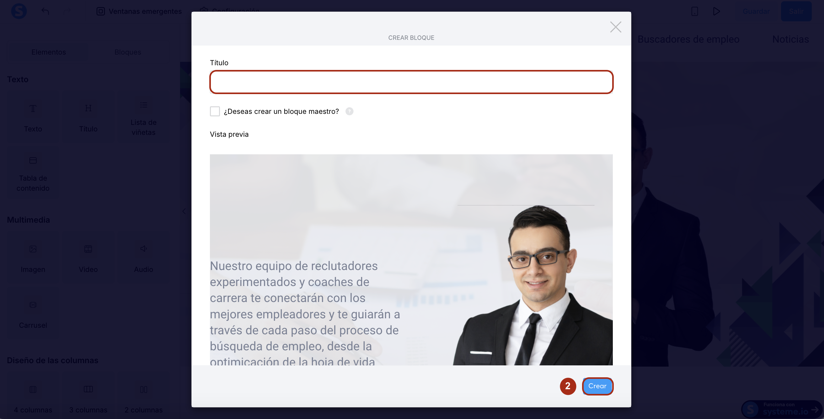 Un bloque es una agrupación de elementos y contenido que se puede guardar y reusar en otras páginas.