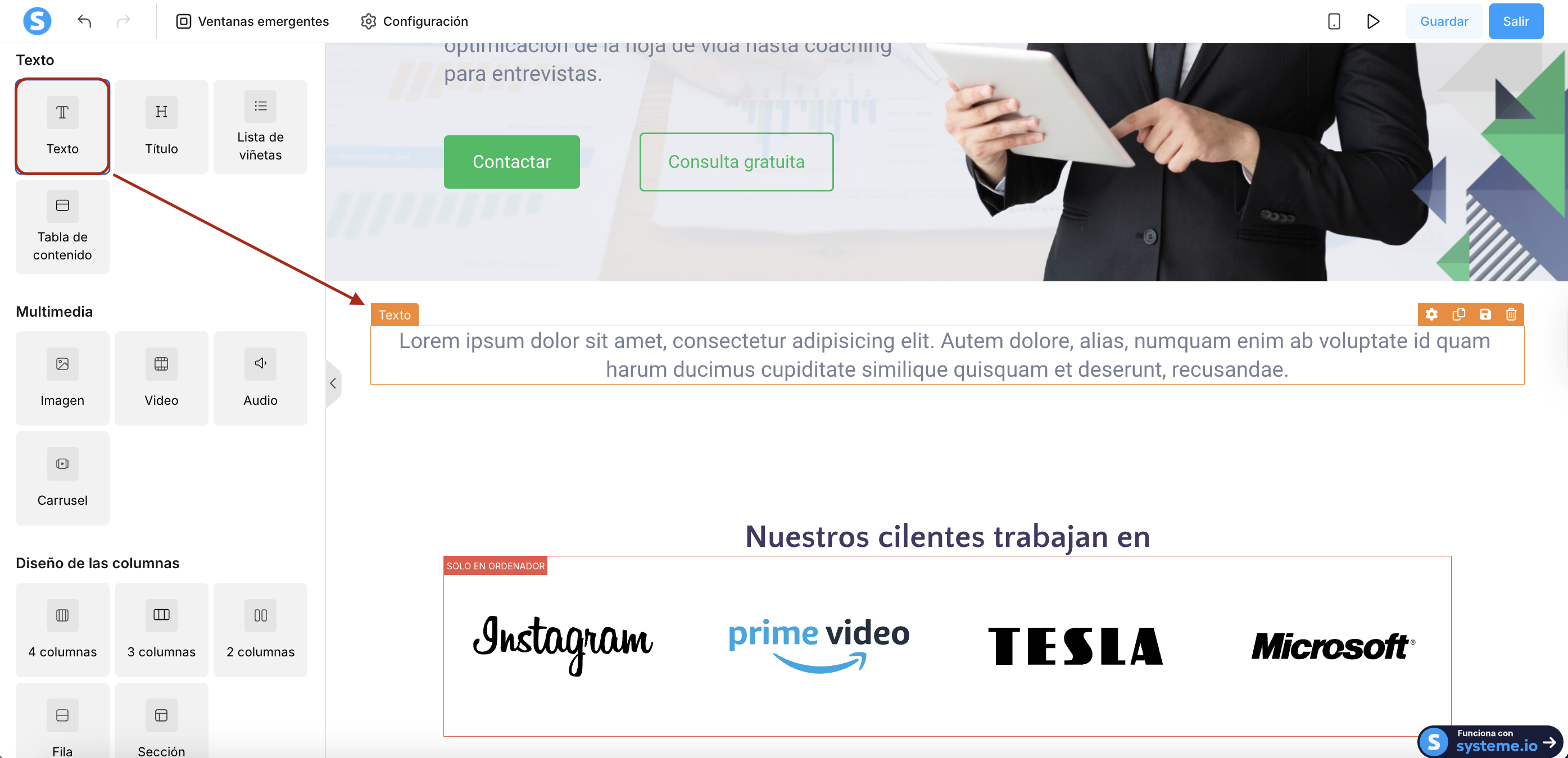 En este artículo aprenderás a utilizar la sección texto en el editor.