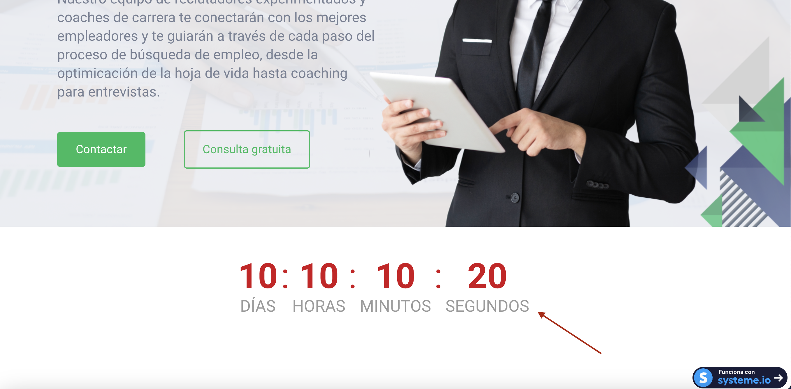 Si defines la duración de 10 días, 10 horas, 10 minutos y 30 segundos, el temporizador se va a ver así tan pronto como la página cargue.