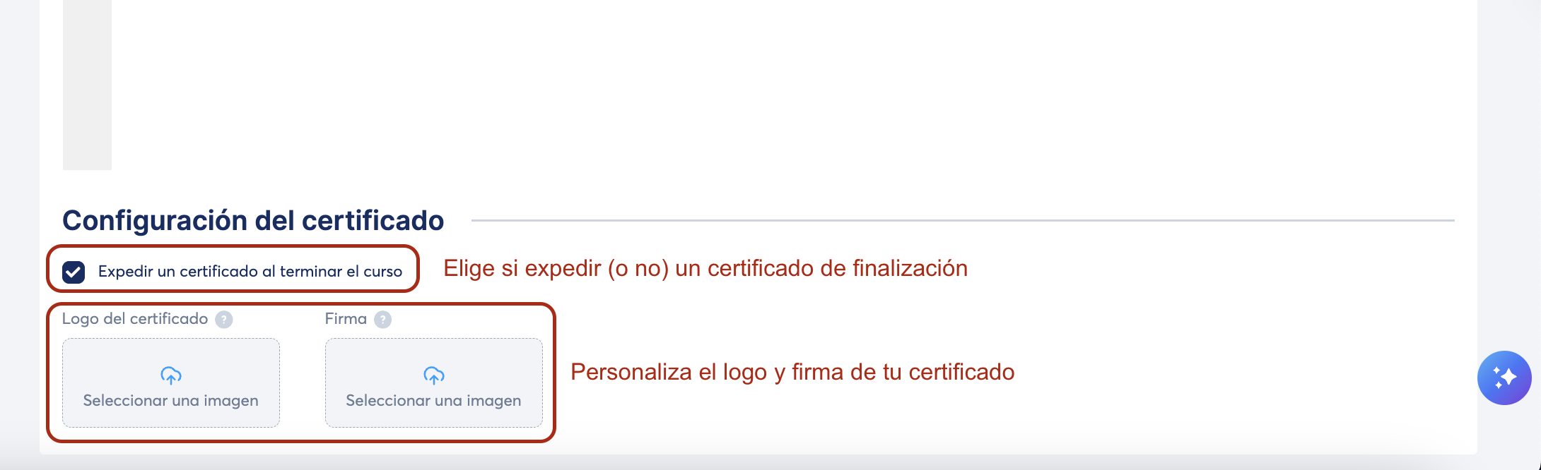 Modifica la configuración de tu curso como sea necesario, como se muestra en la siguientes imágenes: